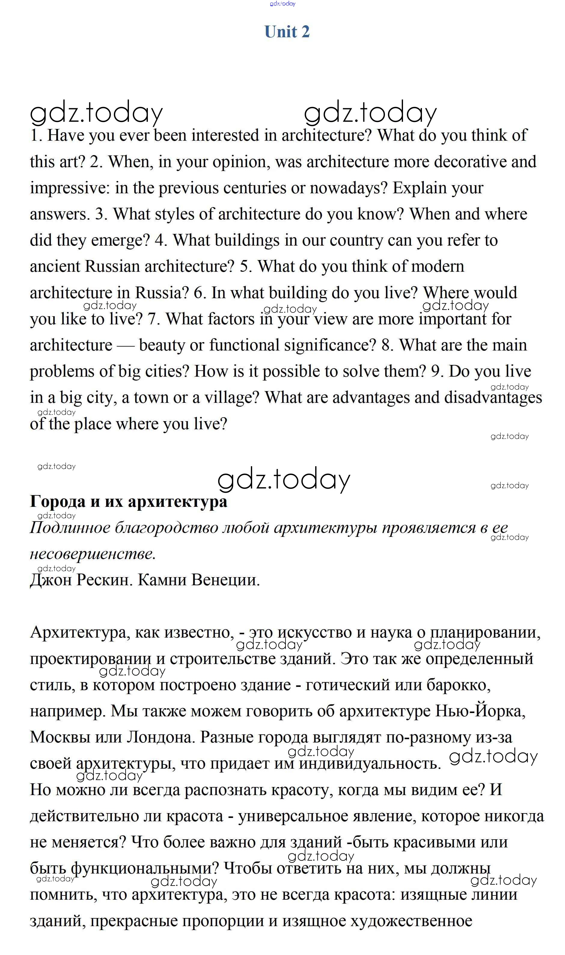 На страницах сайта gdz.today вы найдете учебный и вспомогательный материал, направленный на улучшения знаний школьной программы. ГДЗ - онлайн мир знаний Решение. Unit 2. Town and Its Architecture 1 Учебнику по Английскому языку для 11 класса Афанасьева, Михеева Углубленный уровень Просвещение 2015