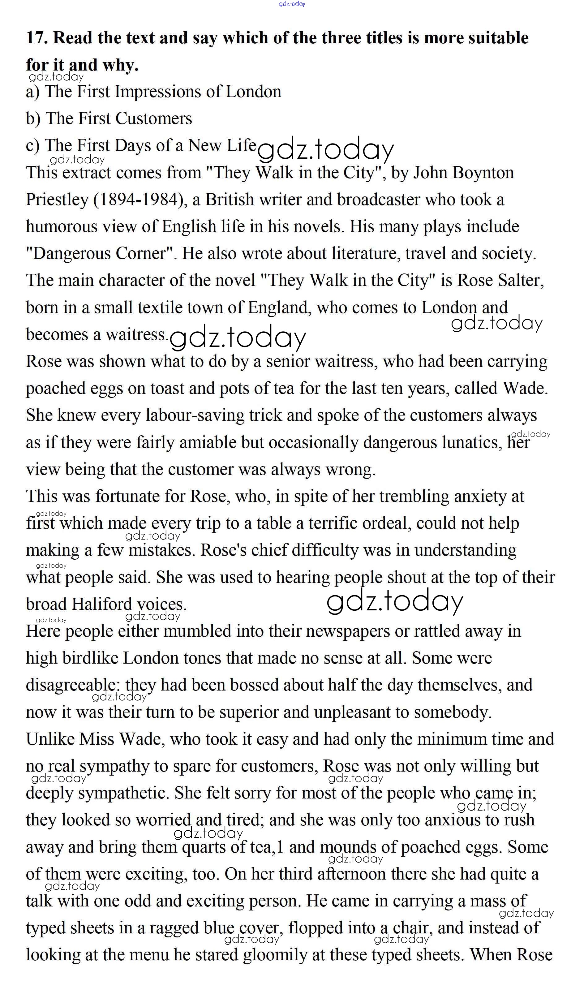 На страницах сайта gdz.today вы найдете учебный и вспомогательный материал, направленный на улучшения знаний школьной программы. ГДЗ - онлайн мир знаний Решение. Unit 2. Town and Its Architecture 17 Учебнику по Английскому языку для 11 класса Афанасьева, Михеева Углубленный уровень Просвещение 2015