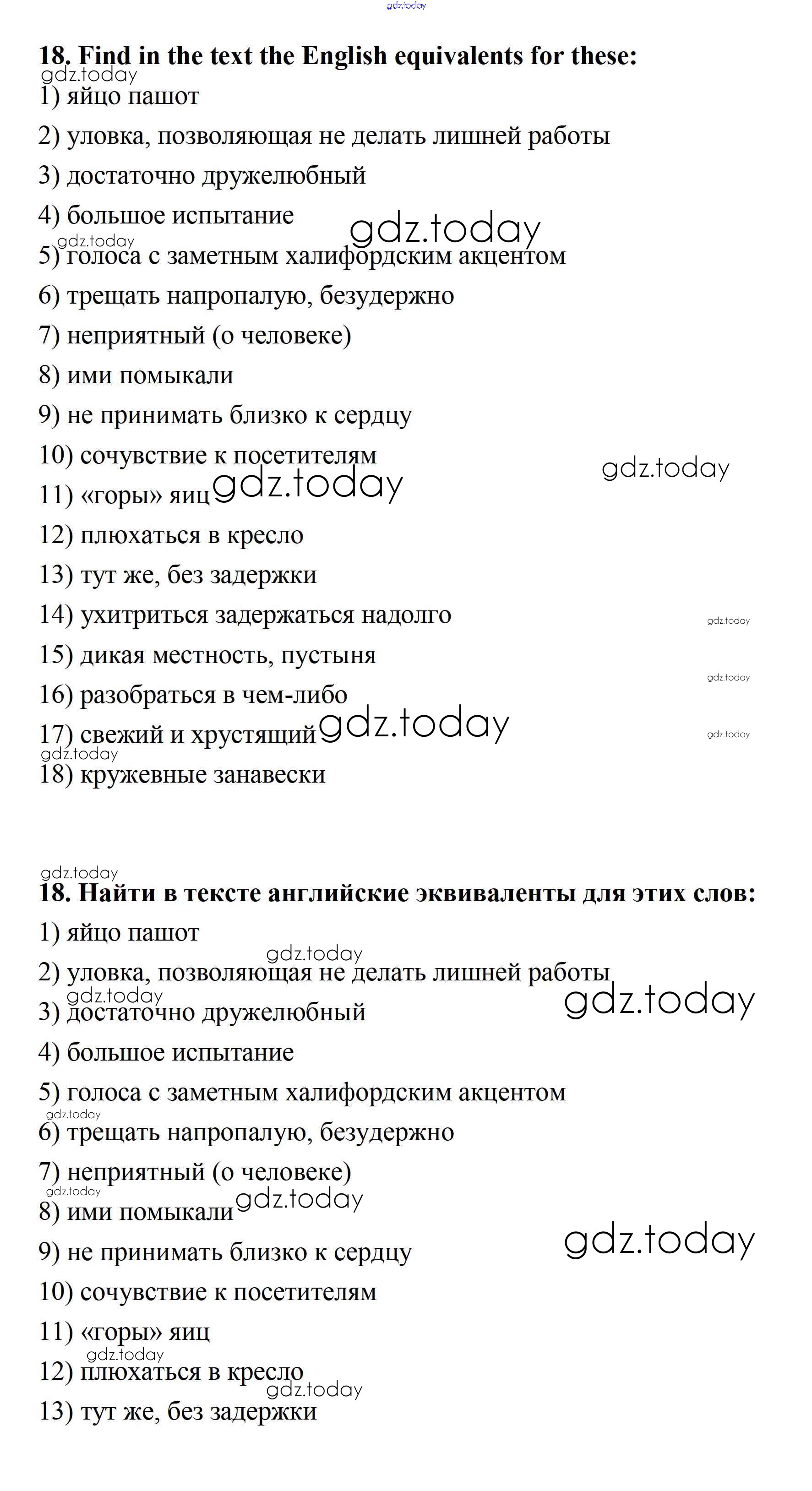 На страницах сайта gdz.today вы найдете учебный и вспомогательный материал, направленный на улучшения знаний школьной программы. ГДЗ - онлайн мир знаний Решение. Unit 2. Town and Its Architecture  18 Учебнику по Английскому языку для 11 класса Афанасьева, Михеева Углубленный уровень Просвещение  2015