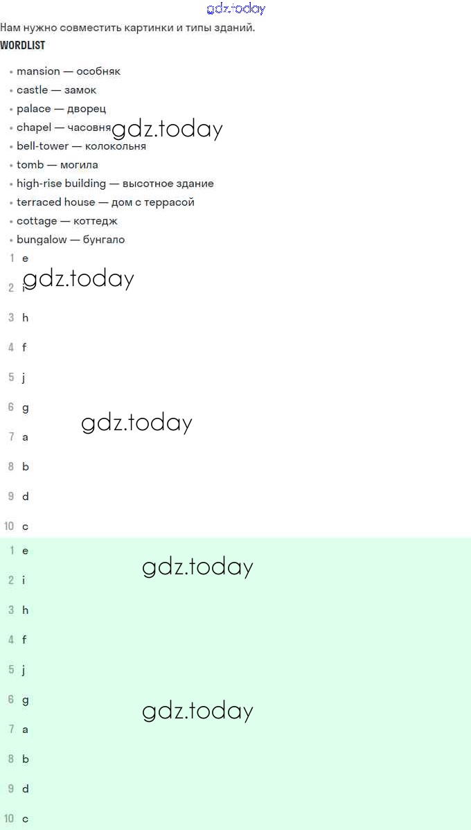 На страницах сайта gdz.today вы найдете учебный и вспомогательный материал, направленный на улучшения знаний школьной программы. ГДЗ - онлайн мир знаний Решение. Unit 2. Town and Its Architecture 2 Учебнику по Английскому языку для 11 класса Афанасьева, Михеева Углубленный уровень Просвещение 2015