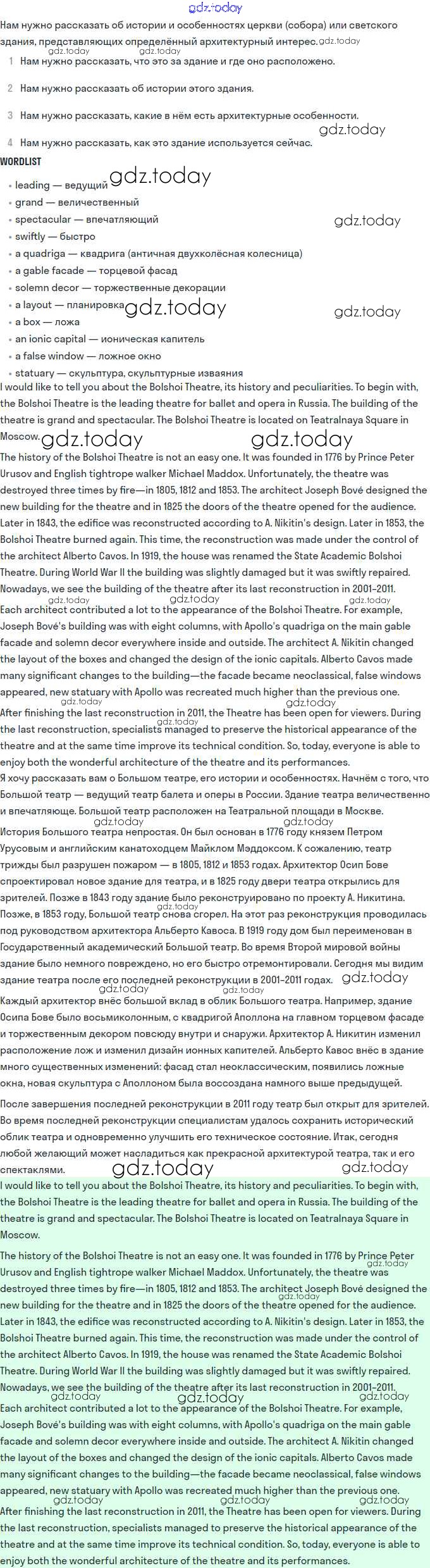 На страницах сайта gdz.today вы найдете учебный и вспомогательный материал, направленный на улучшения знаний школьной программы. ГДЗ - онлайн мир знаний Решение. Unit 2. Town and Its Architecture  6 Учебнику по Английскому языку для 11 класса Афанасьева, Михеева Углубленный уровень Просвещение  2015