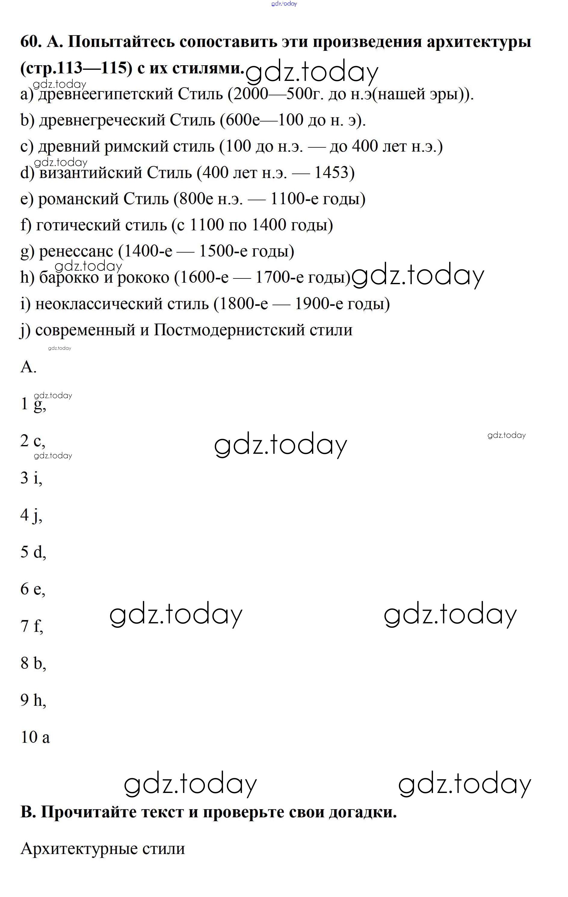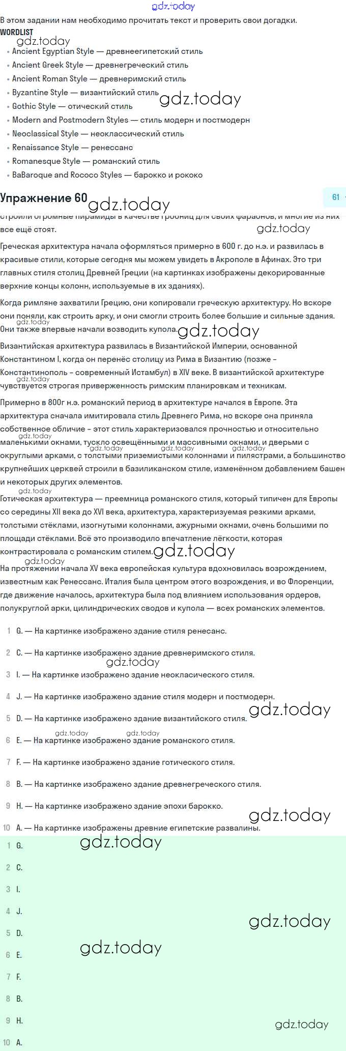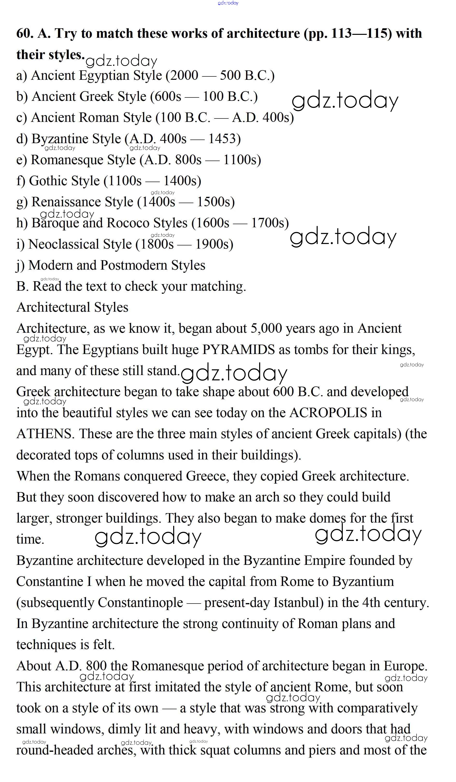 На страницах сайта gdz.today вы найдете учебный и вспомогательный материал, направленный на улучшения знаний школьной программы. ГДЗ - онлайн мир знаний Решение. Unit 2. Town and Its Architecture 60 Учебнику по Английскому языку для 11 класса Афанасьева, Михеева Углубленный уровень Просвещение 2015