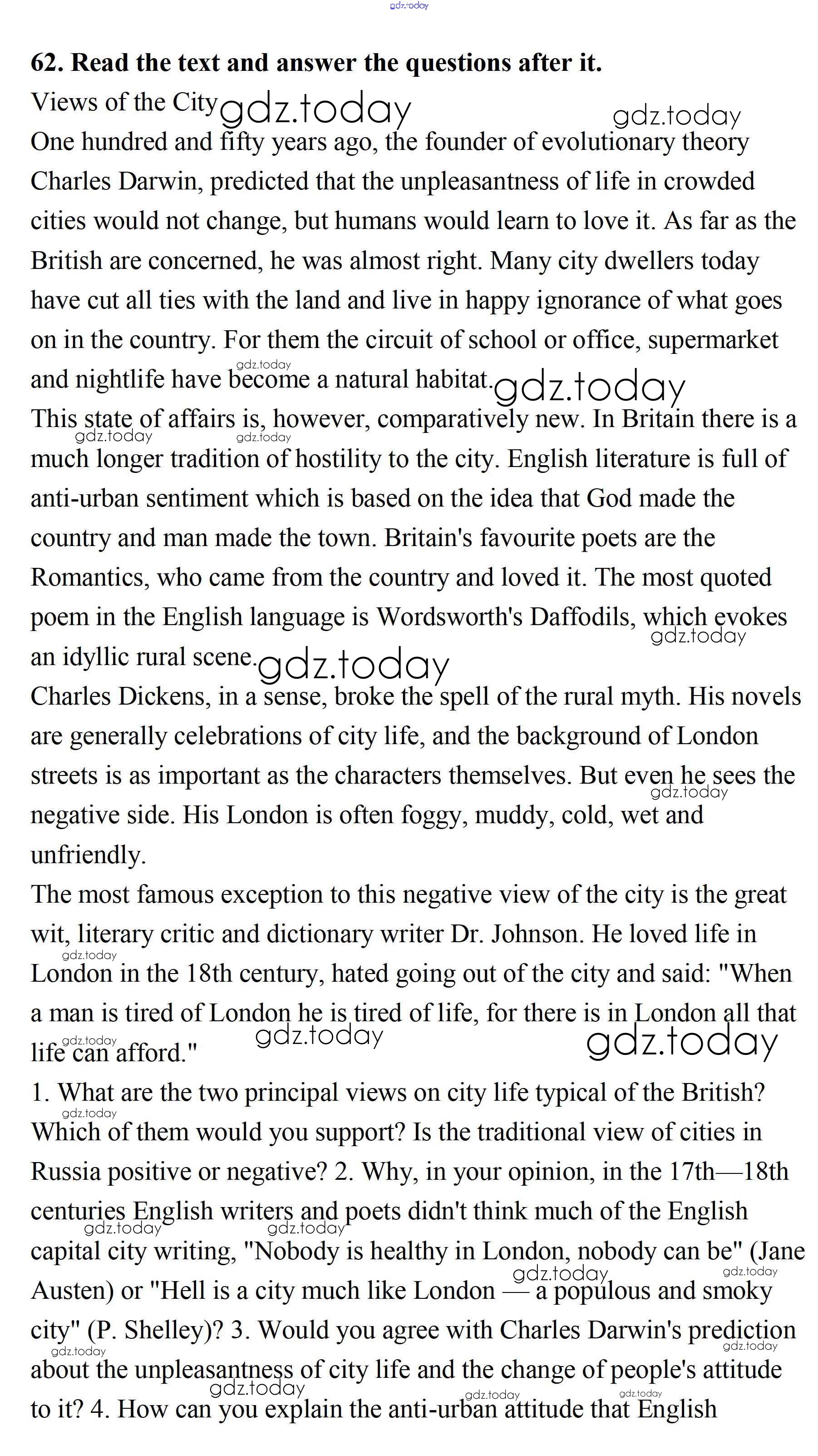 На страницах сайта gdz.today вы найдете учебный и вспомогательный материал, направленный на улучшения знаний школьной программы. ГДЗ - онлайн мир знаний Решение. Unit 2. Town and Its Architecture 62 Учебнику по Английскому языку для 11 класса Афанасьева, Михеева Углубленный уровень Просвещение 2015