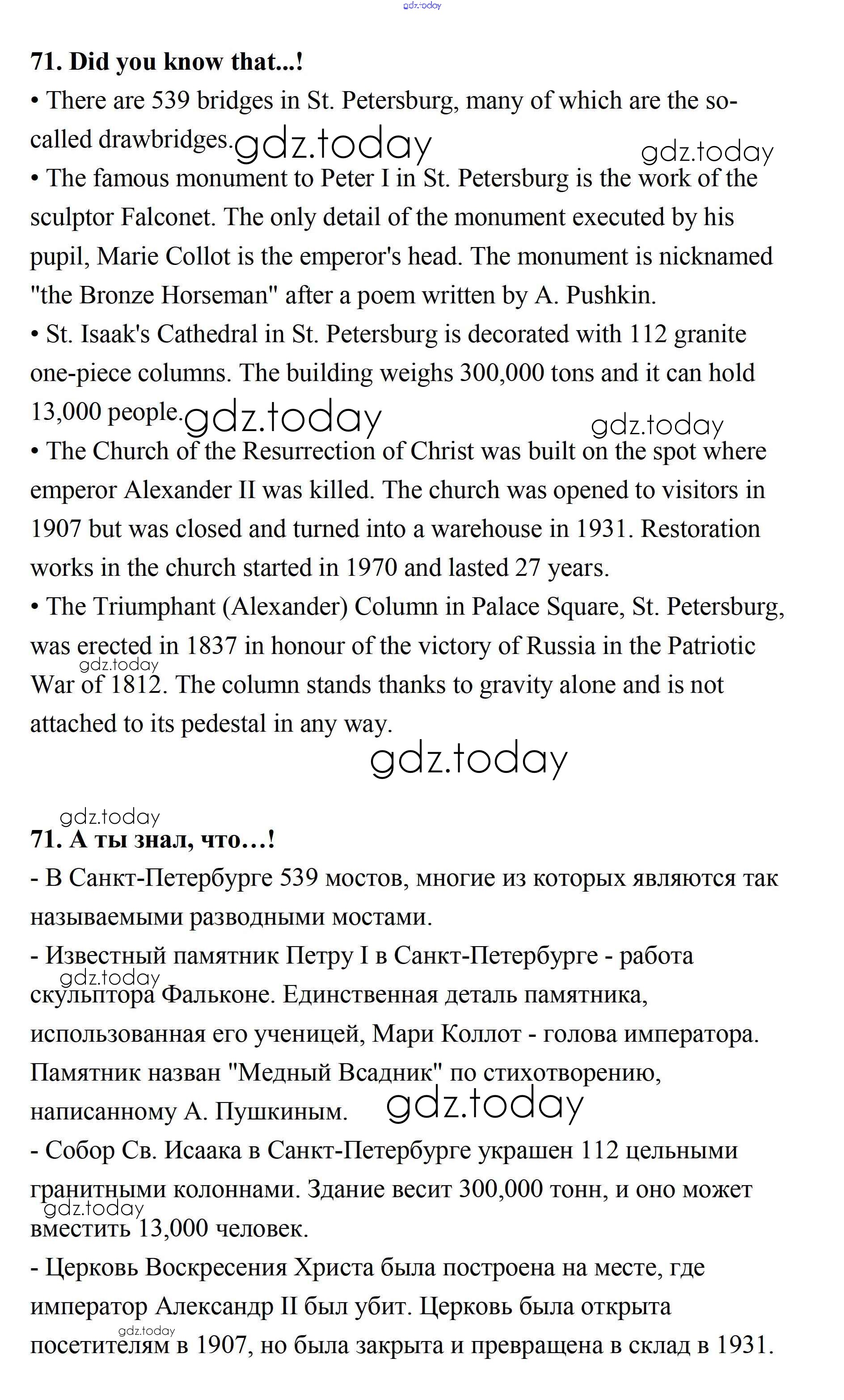 На страницах сайта gdz.today вы найдете учебный и вспомогательный материал, направленный на улучшения знаний школьной программы. ГДЗ - онлайн мир знаний Решение. Unit 2. Town and Its Architecture  71 Учебнику по Английскому языку для 11 класса Афанасьева, Михеева Углубленный уровень Просвещение  2015