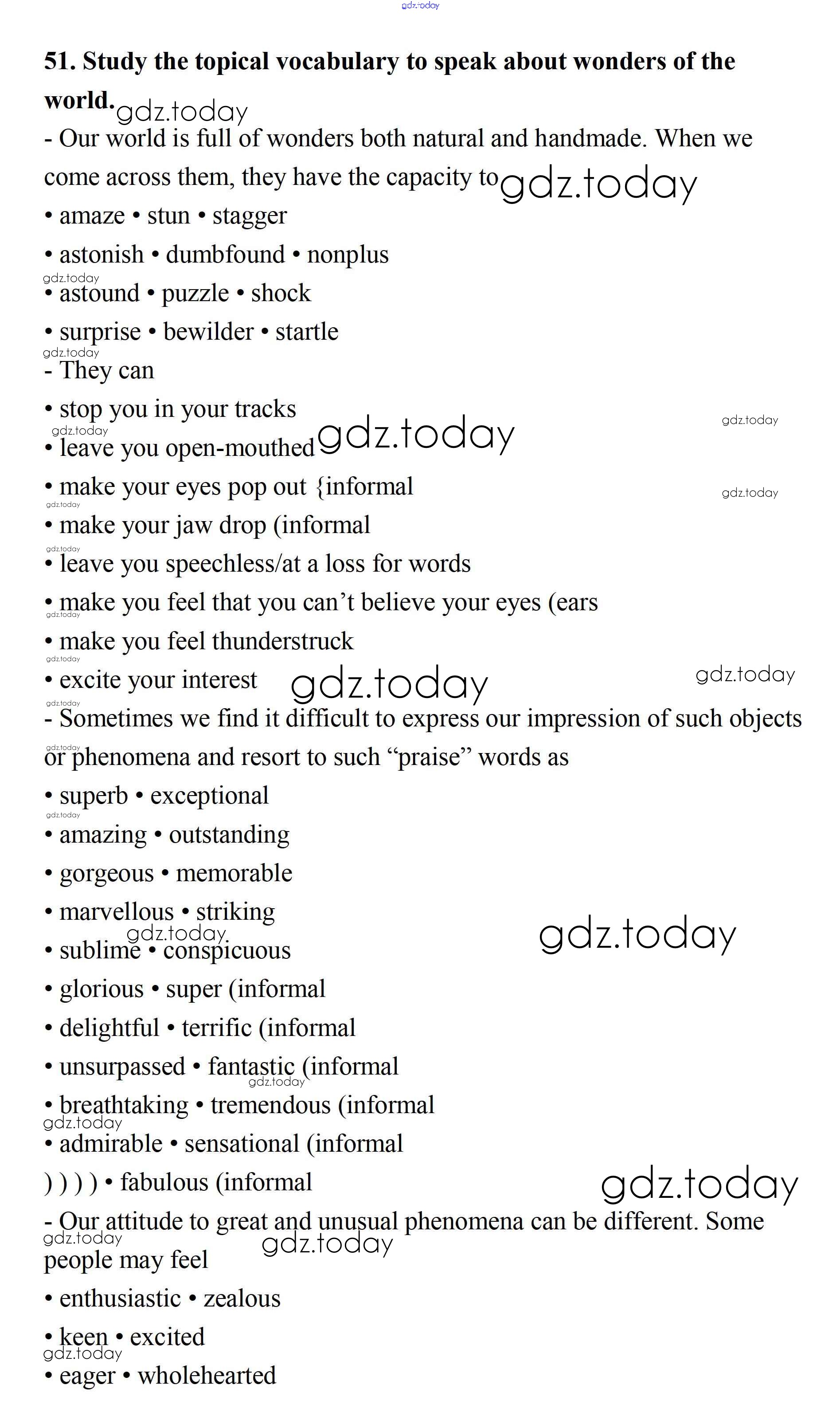 Ответы к Решение. Unit 3. Wonders of the World 51 Учебнику по Английскому языку для 11 класса Афанасьева, Михеева Углубленный уровень Просвещение 2015