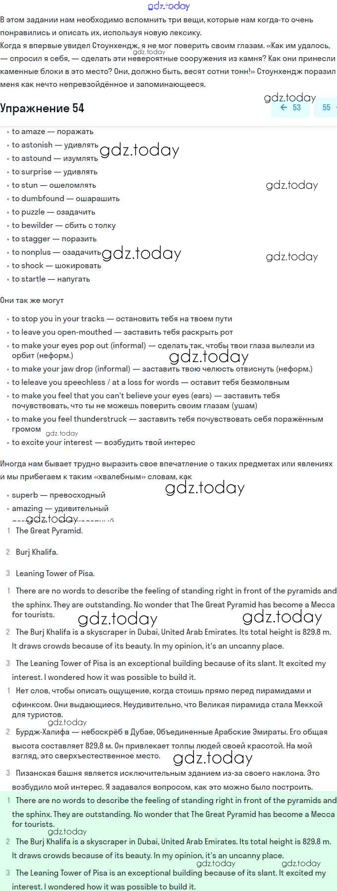 Ответы к Решение. Unit 3. Wonders of the World 54 Учебнику по Английскому языку для 11 класса Афанасьева, Михеева Углубленный уровень Просвещение 2015