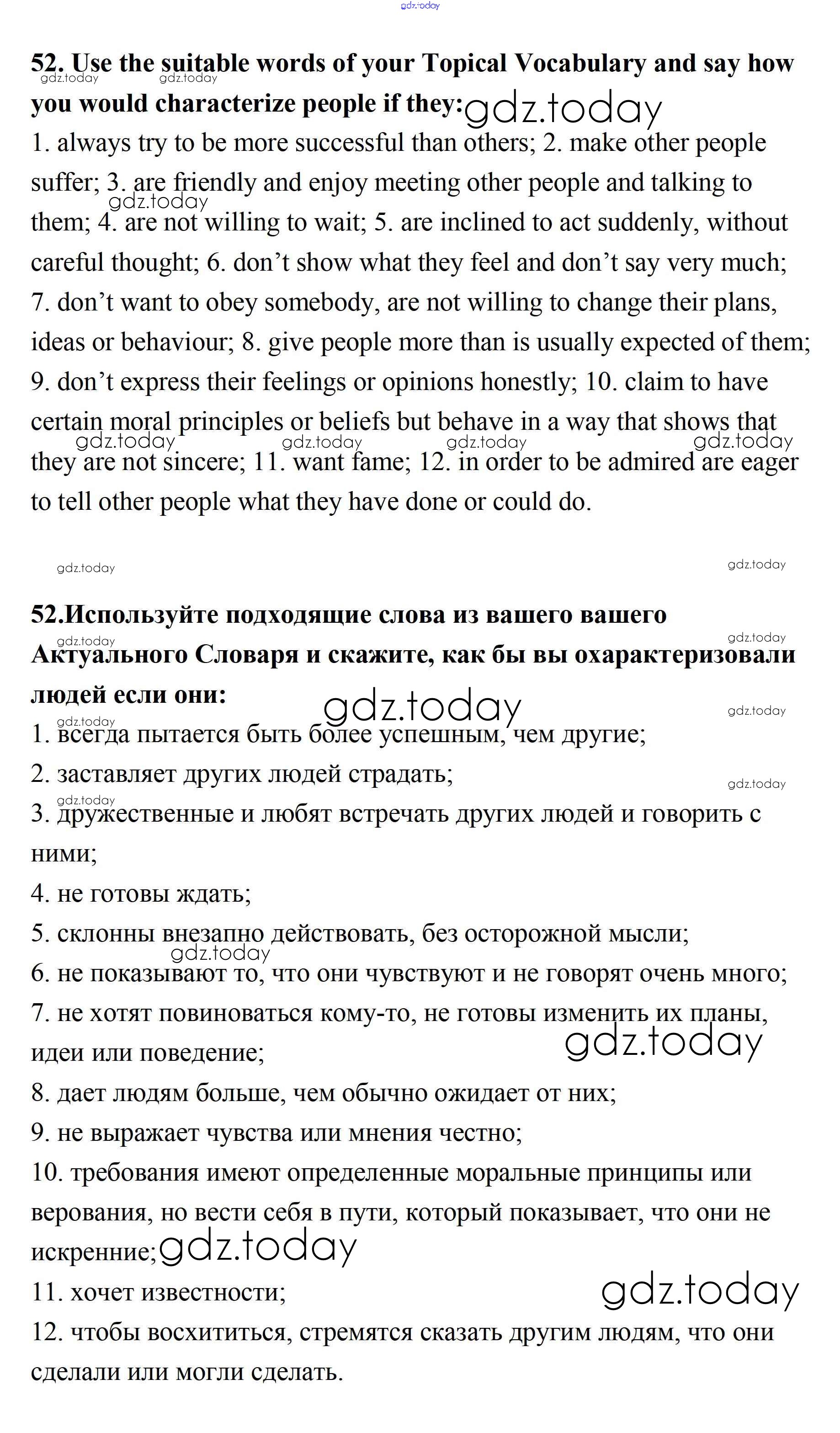 На страницах сайта gdz.today вы найдете учебный и вспомогательный материал, направленный на улучшения знаний школьной программы. ГДЗ - онлайн мир знаний Решение. Unit 4. Man as the Greatest Wonder of the World 52 Учебнику по Английскому языку для 11 класса Афанасьева, Михеева Углубленный уровень Просвещение 2015