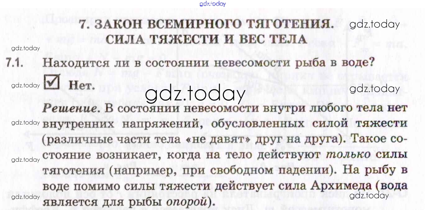Ответы к Решение к теме 7. Закон всемирного тяготения. Сила тяжести и вес тела 7.1 Задачнику по Физике для 10-11 класса Гельфгат, Генденштейн Профильный уровень Илекса 2021