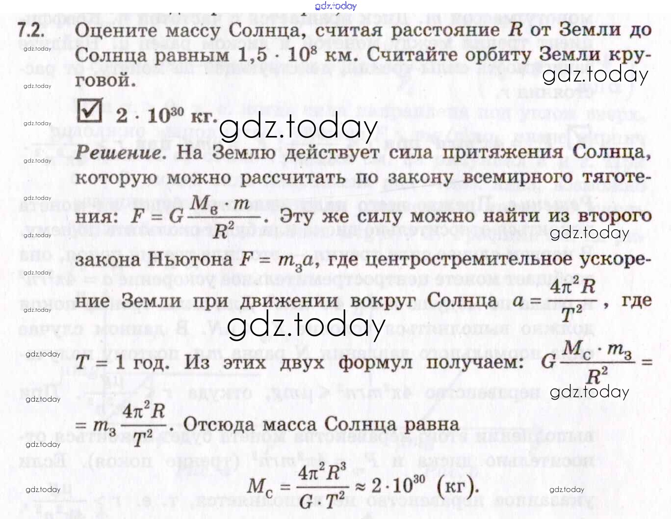 Ответы к Решение к теме 7. Закон всемирного тяготения. Сила тяжести и вес тела 7.2 Задачнику по Физике для 10-11 класса Гельфгат, Генденштейн Профильный уровень Илекса 2021