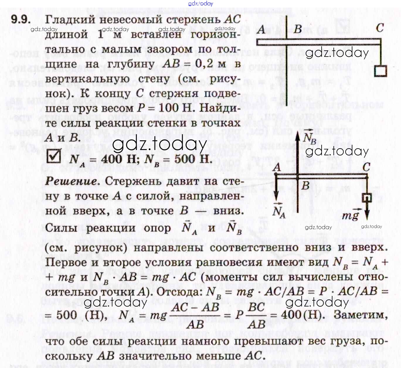 Ответы к Решение к теме 9. Элементы статики 9.9 Задачнику по Физике для 10-11 класса Гельфгат, Генденштейн Профильный уровень Илекса 2021