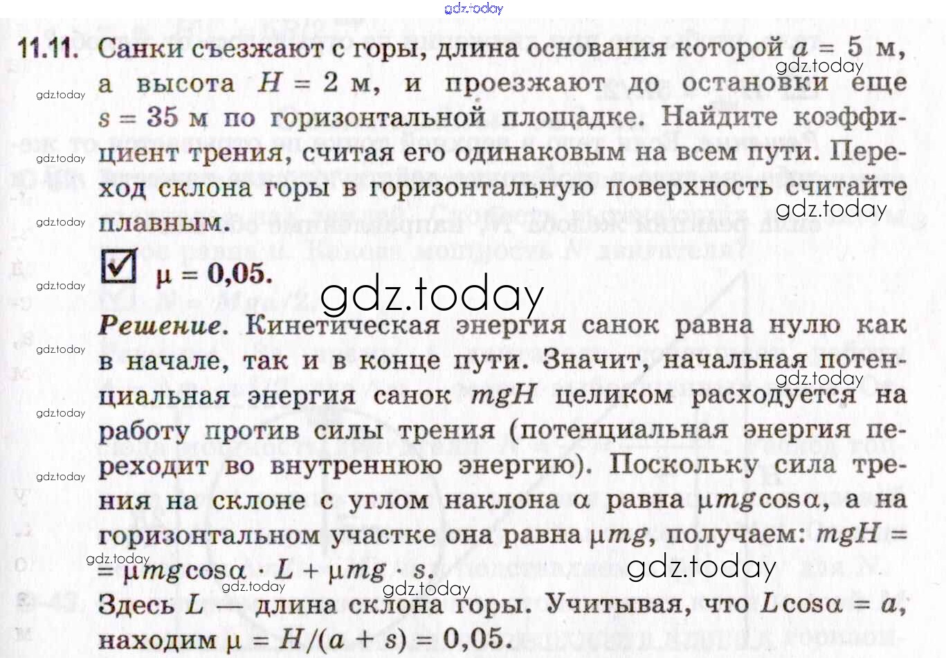 Ответы к Решение к теме 11. Механическая работа. Энергия. Закон сохранения энергии 11.11 Задачнику по Физике для 10-11 класса Гельфгат, Генденштейн Профильный уровень Илекса 2021