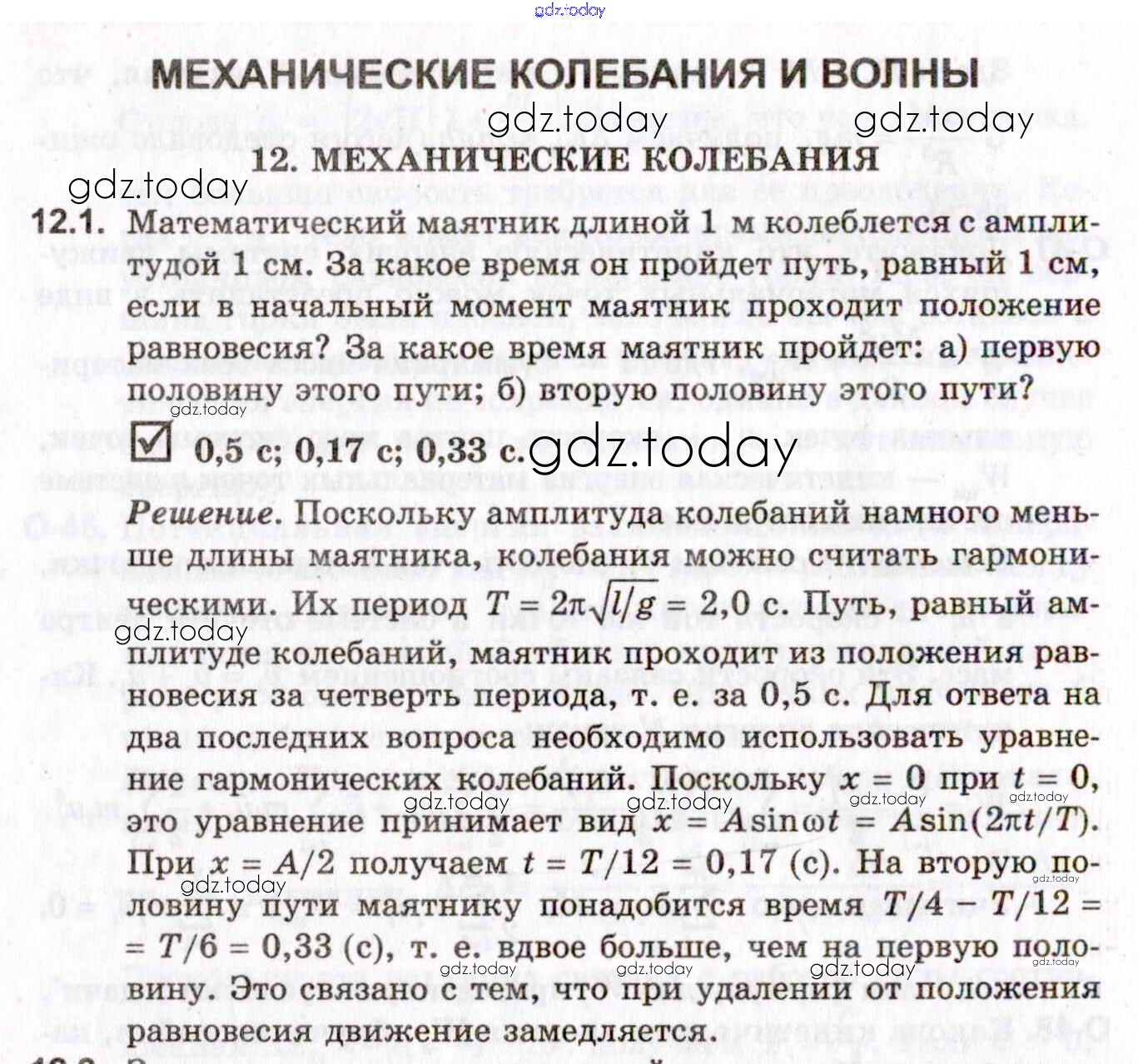 На страницах сайта gdz.today вы найдете учебный и вспомогательный материал, направленный на улучшения знаний школьной программы. ГДЗ - онлайн мир знаний Решение к теме 12. Механические колебания 12.1 Задачнику по Физике для 10-11 класса Гельфгат, Генденштейн Профильный уровень Илекса 2021