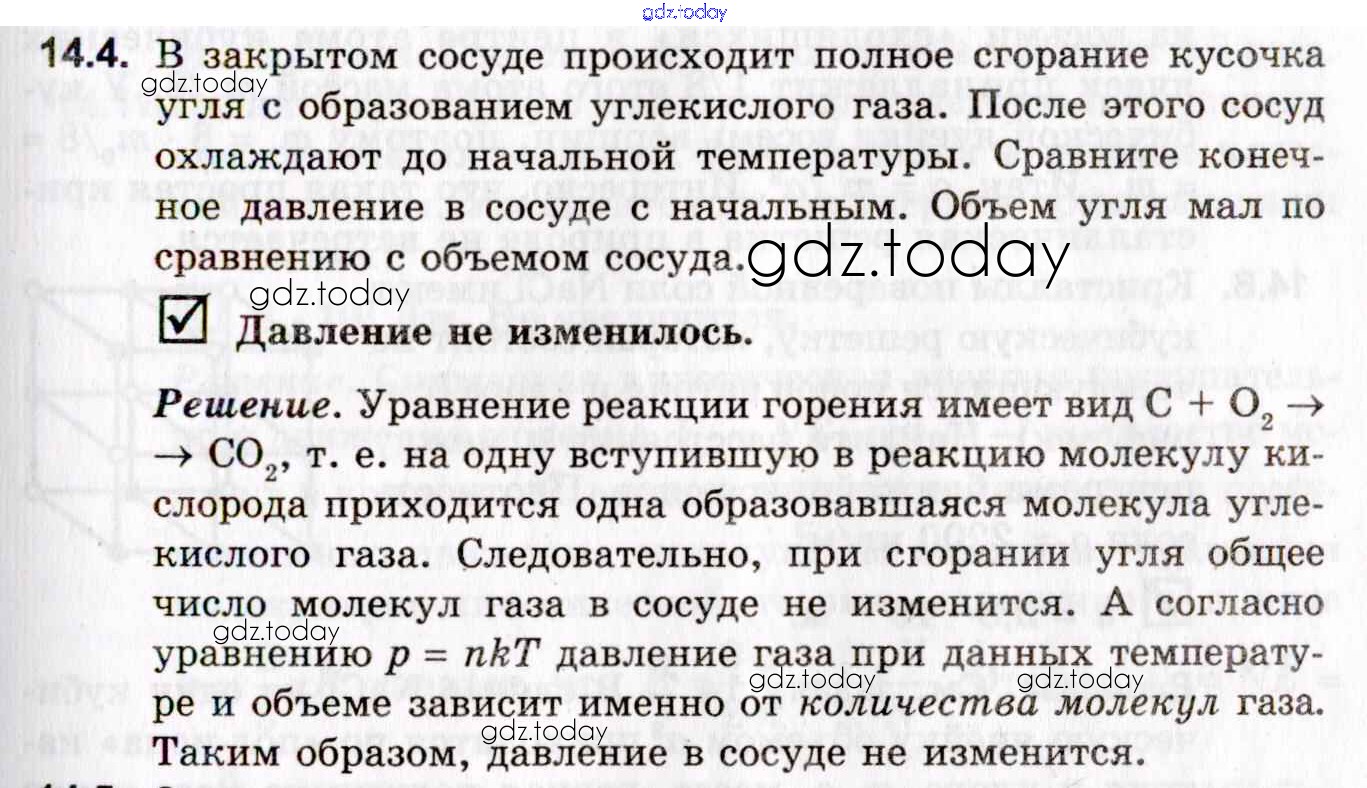 Ответы к Решение к теме 14. Молекулярно-кинетическая теория 14.4 Задачнику по Физике для 10-11 класса Гельфгат, Генденштейн Профильный уровень Илекса 2021