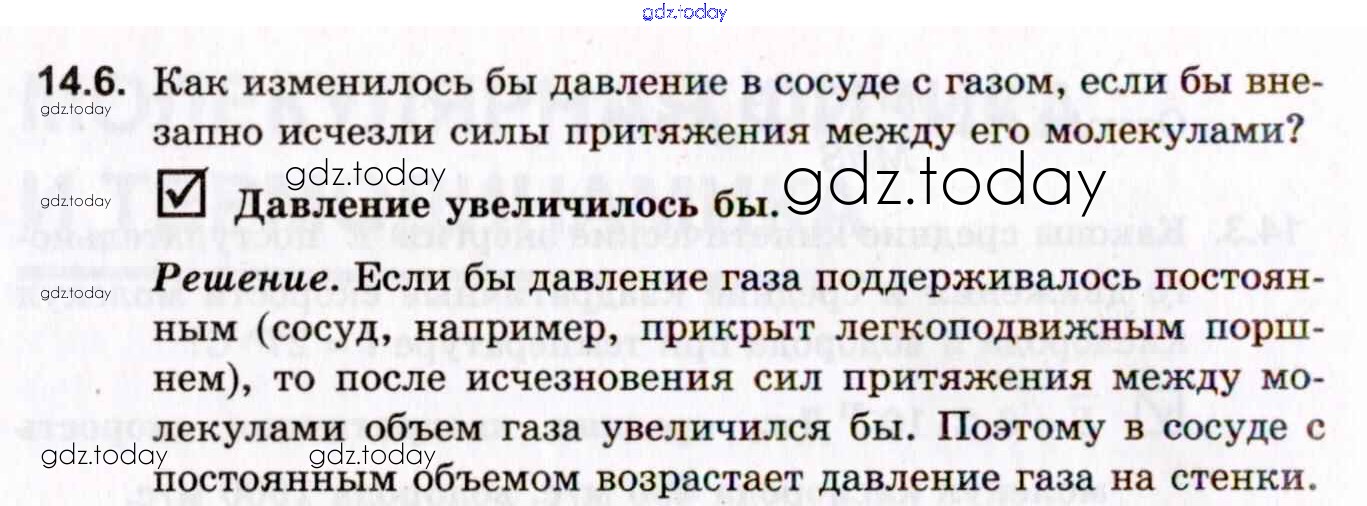 Ответы к Решение к теме 14. Молекулярно-кинетическая теория 14.6 Задачнику по Физике для 10-11 класса Гельфгат, Генденштейн Профильный уровень Илекса 2021