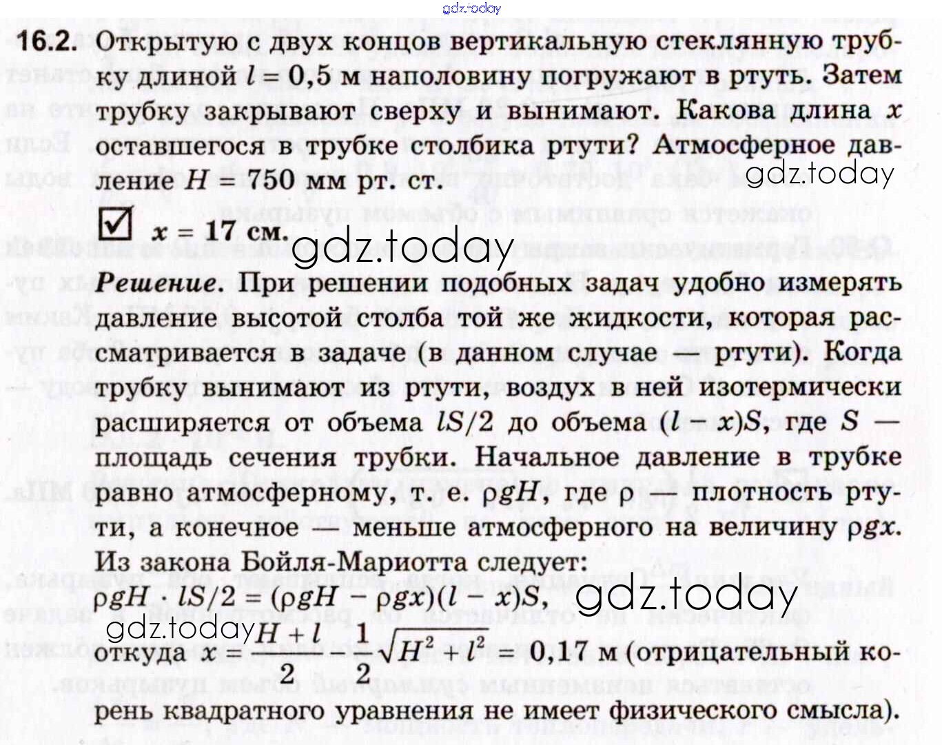 На страницах сайта gdz.today вы найдете учебный и вспомогательный материал, направленный на улучшения знаний школьной программы. ГДЗ - онлайн мир знаний Решение к теме 16. Газовые законы 16.2 Задачнику по Физике для 10-11 класса Гельфгат, Генденштейн Профильный уровень Илекса 2021