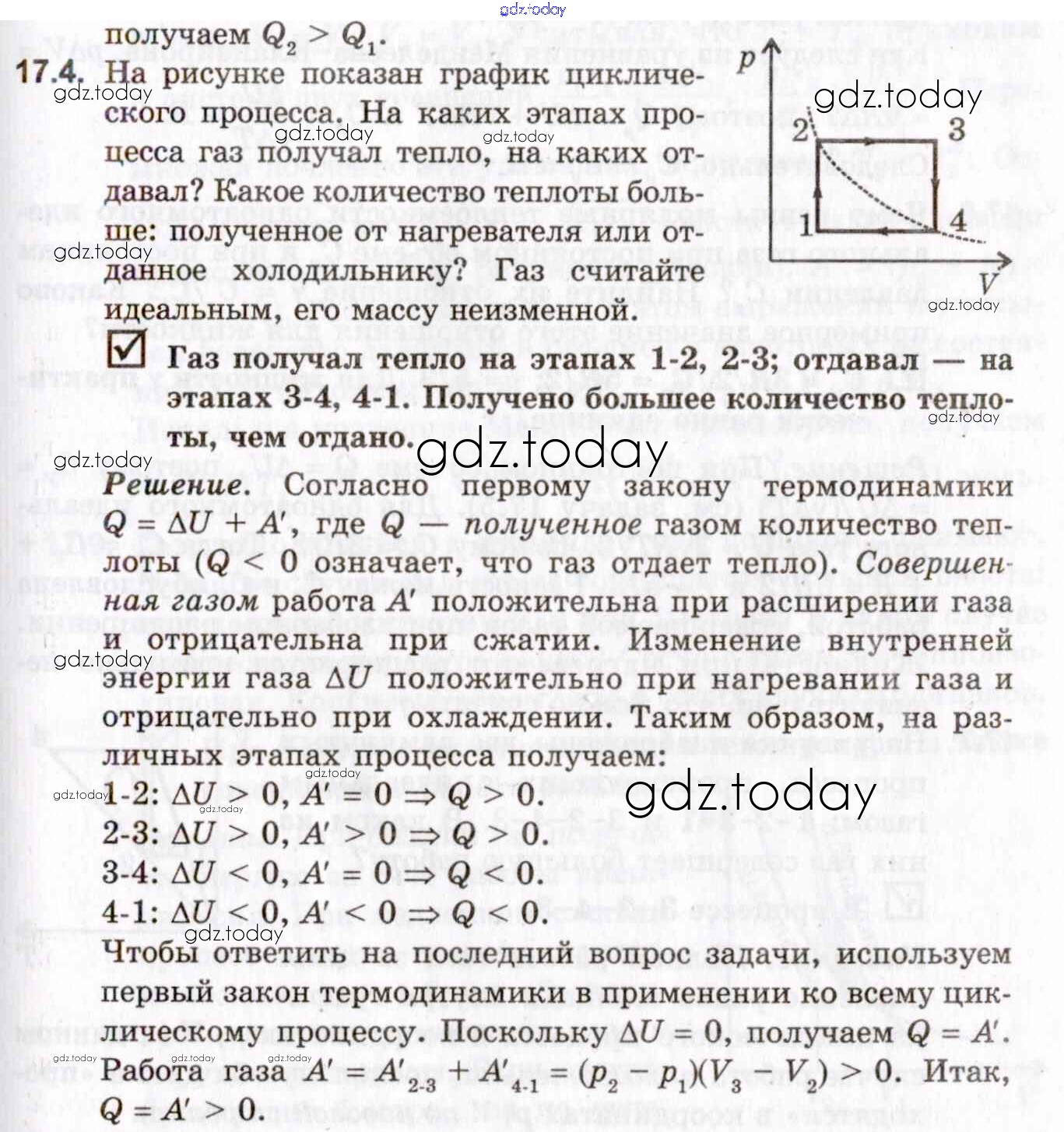 На страницах сайта gdz.today вы найдете учебный и вспомогательный материал, направленный на улучшения знаний школьной программы. ГДЗ - онлайн мир знаний Решение к теме 17. Законы термодинамики 17.4 Задачнику по Физике для 10-11 класса Гельфгат, Генденштейн Профильный уровень Илекса 2021