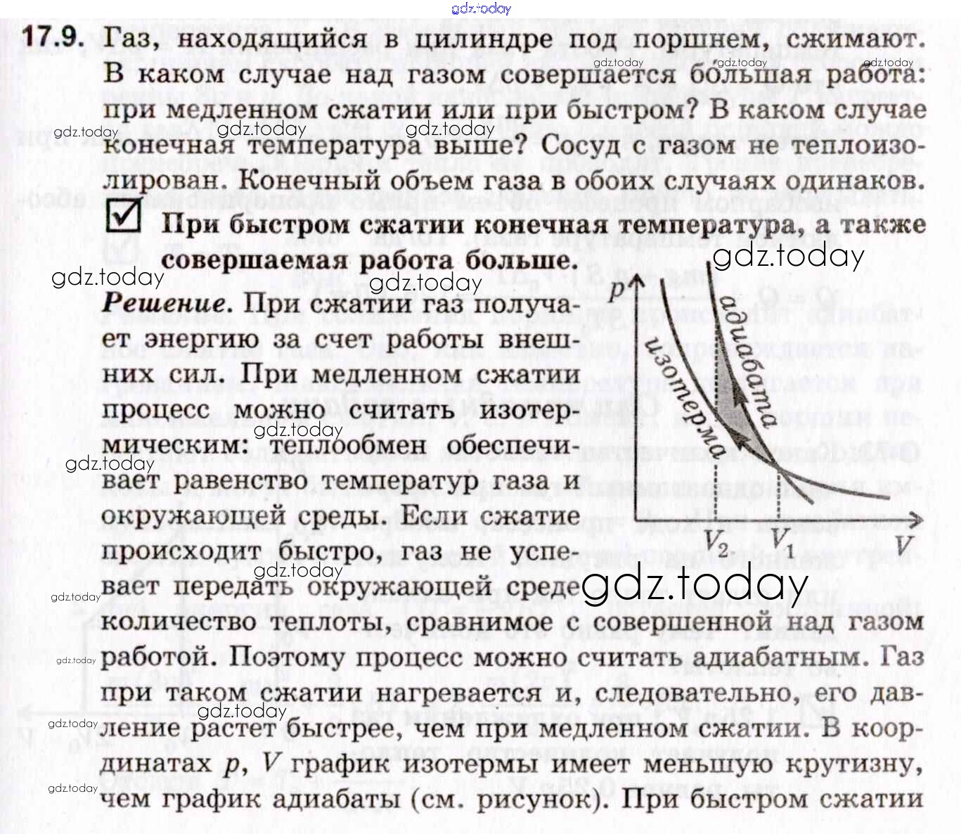 На страницах сайта gdz.today вы найдете учебный и вспомогательный материал, направленный на улучшения знаний школьной программы. ГДЗ - онлайн мир знаний Решение к теме 17. Законы термодинамики 17.9 Задачнику по Физике для 10-11 класса Гельфгат, Генденштейн Профильный уровень Илекса 2021
