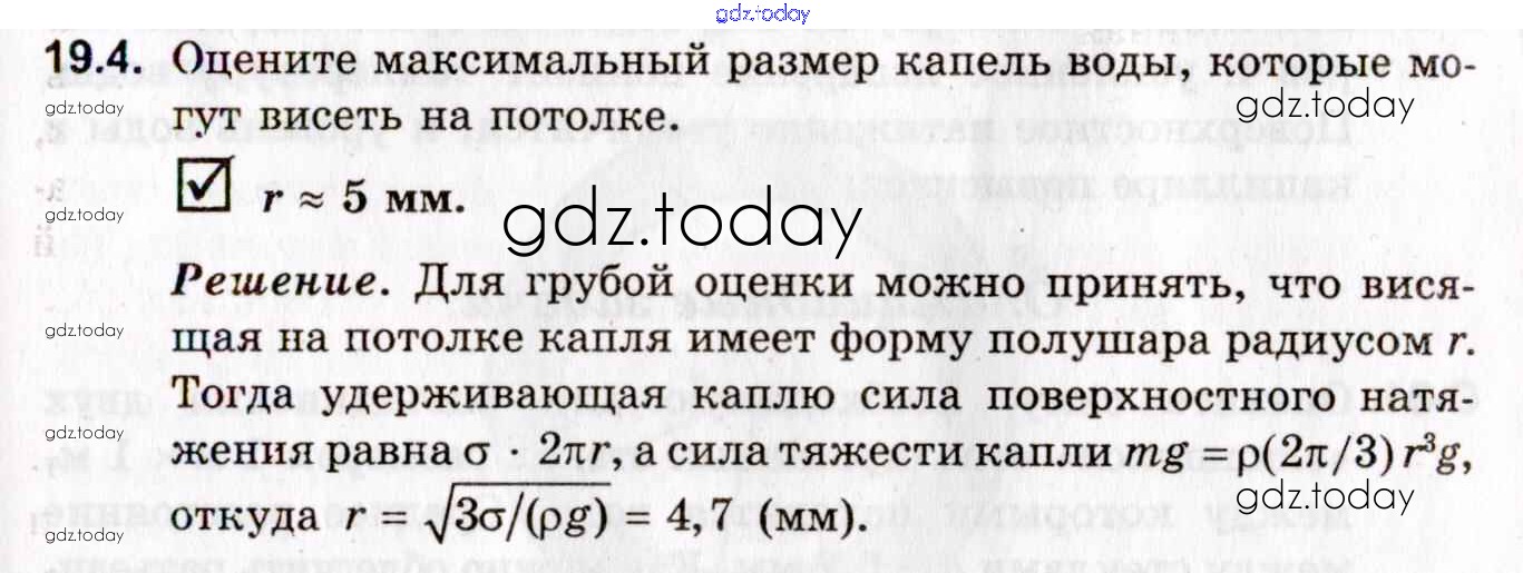 На страницах сайта gdz.today вы найдете учебный и вспомогательный материал, направленный на улучшения знаний школьной программы. ГДЗ - онлайн мир знаний Решение к теме 19. Свойства жидкостей 19.4 Задачнику по Физике для 10-11 класса Гельфгат, Генденштейн Профильный уровень Илекса 2021