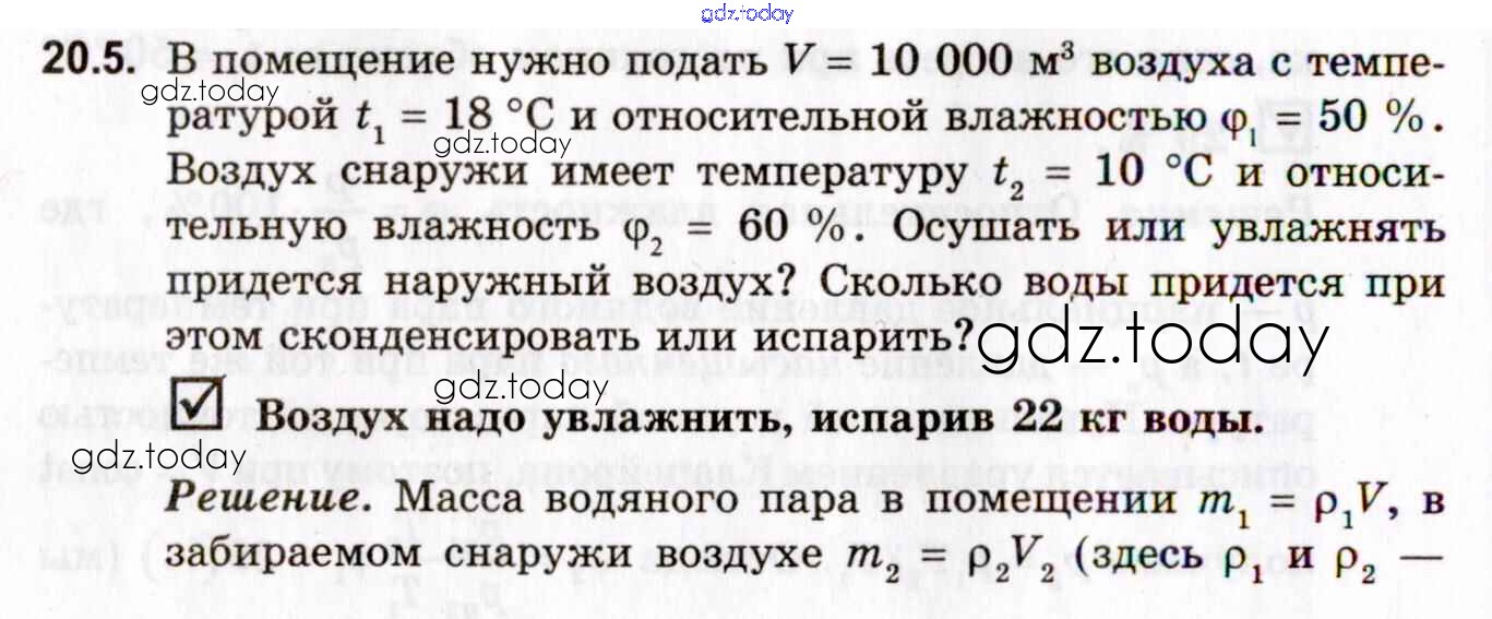 На страницах сайта gdz.today вы найдете учебный и вспомогательный материал, направленный на улучшения знаний школьной программы. ГДЗ - онлайн мир знаний Решение к теме 20. Насыщенные и ненасыщенные пары. Влажность воздуха 20.5 Задачнику по Физике для 10-11 класса Гельфгат, Генденштейн Профильный уровень Илекса 2021