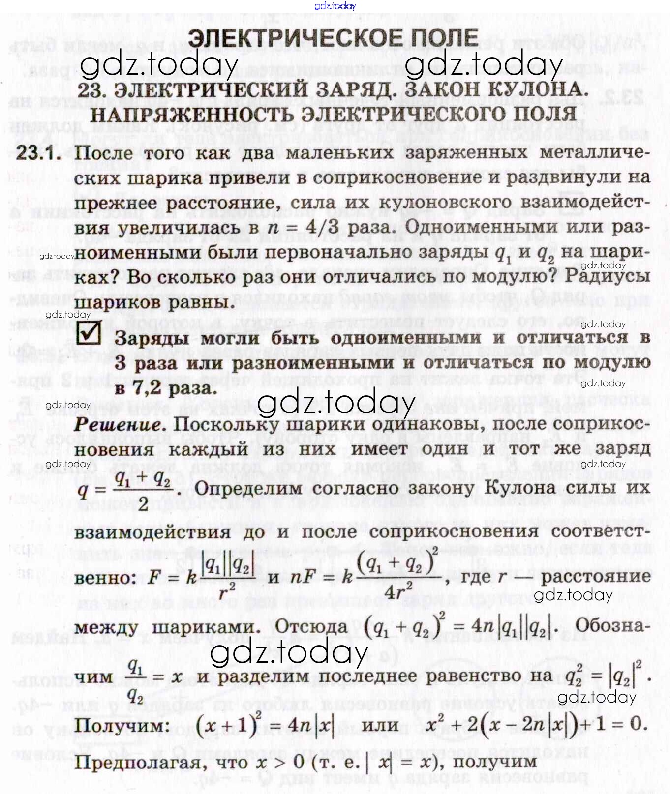 На страницах сайта gdz.today вы найдете учебный и вспомогательный материал, направленный на улучшения знаний школьной программы. ГДЗ - онлайн мир знаний Решение к теме 23. Электрический заряд. Закон Кулона. Напряженность электрического поля 23.1 Задачнику по Физике для 10-11 класса Гельфгат, Генденштейн Профильный уровень Илекса 2021