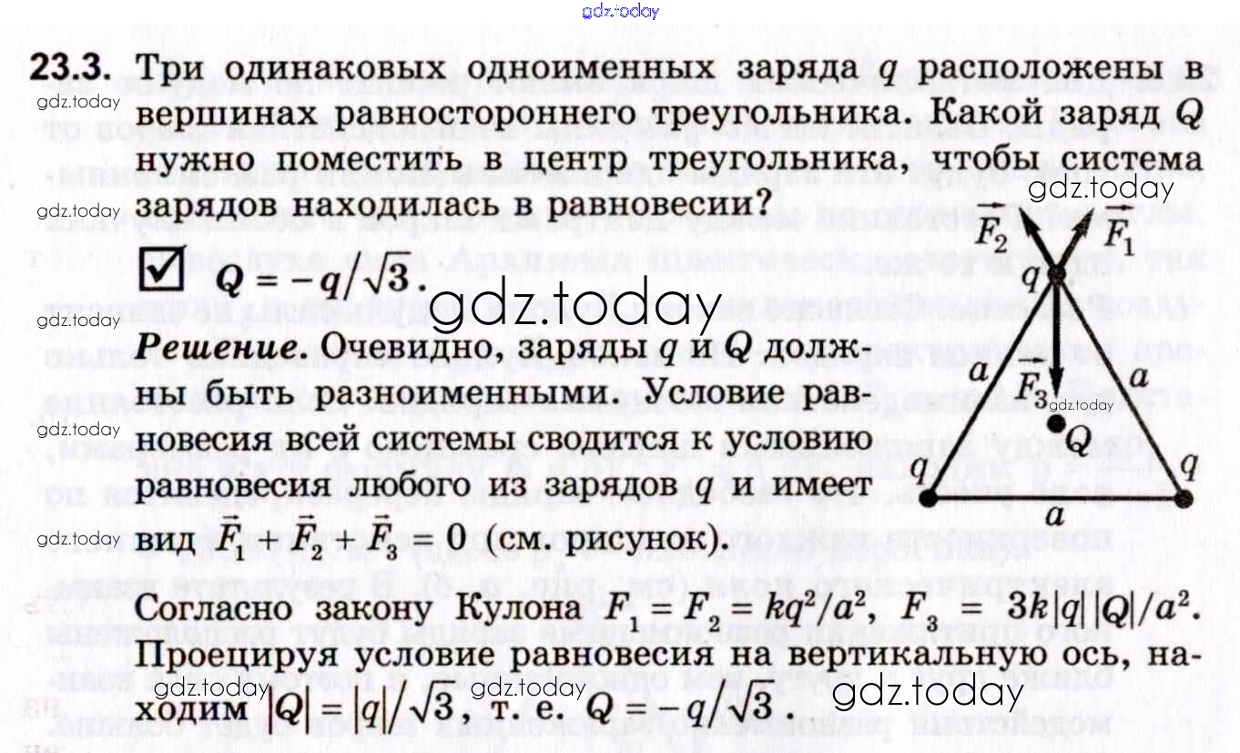На страницах сайта gdz.today вы найдете учебный и вспомогательный материал, направленный на улучшения знаний школьной программы. ГДЗ - онлайн мир знаний Решение к теме 23. Электрический заряд. Закон Кулона. Напряженность электрического поля 23.3 Задачнику по Физике для 10-11 класса Гельфгат, Генденштейн Профильный уровень Илекса 2021