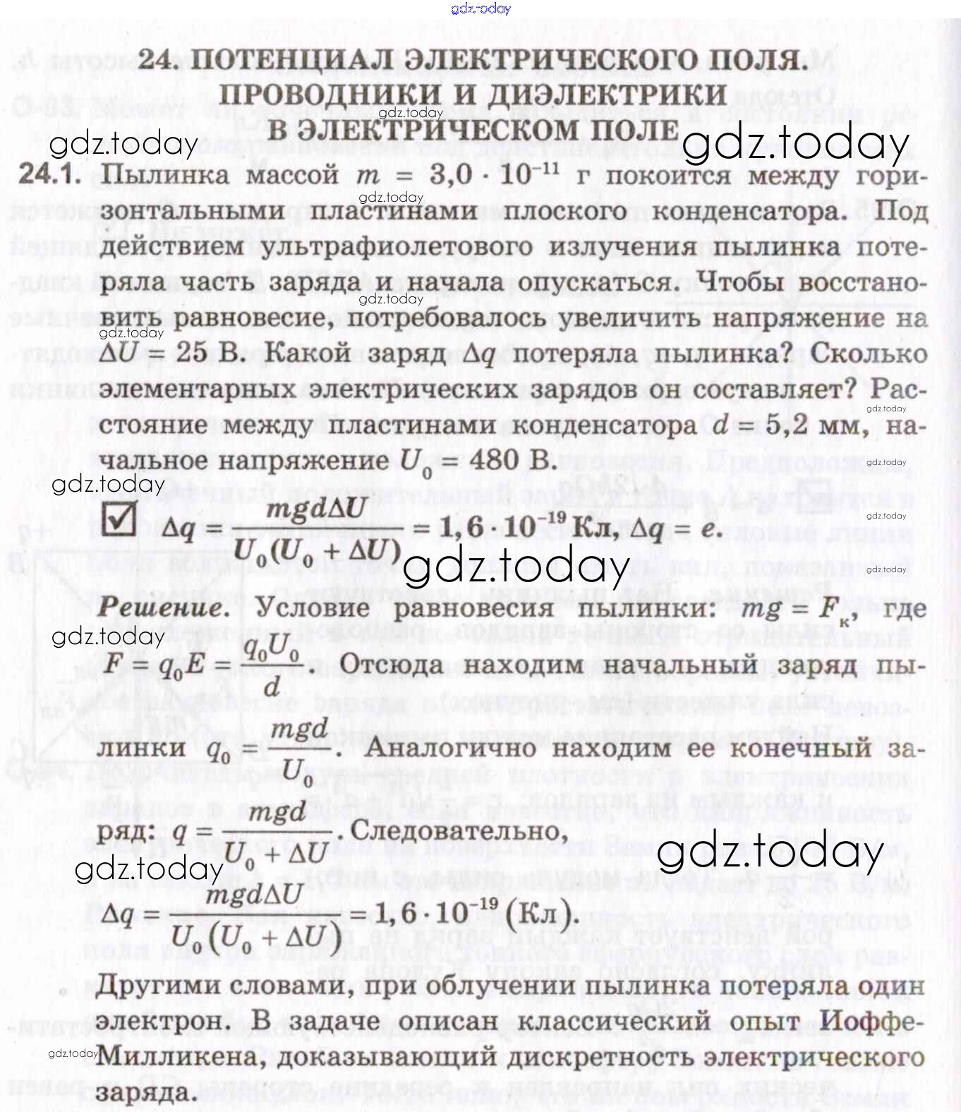 Ответы к Решение к теме 24. Потенциал электрического поля. Проводники и диэлектрики в электрическом поле 24.1 Задачнику по Физике для 10-11 класса Гельфгат, Генденштейн Профильный уровень Илекса 2021