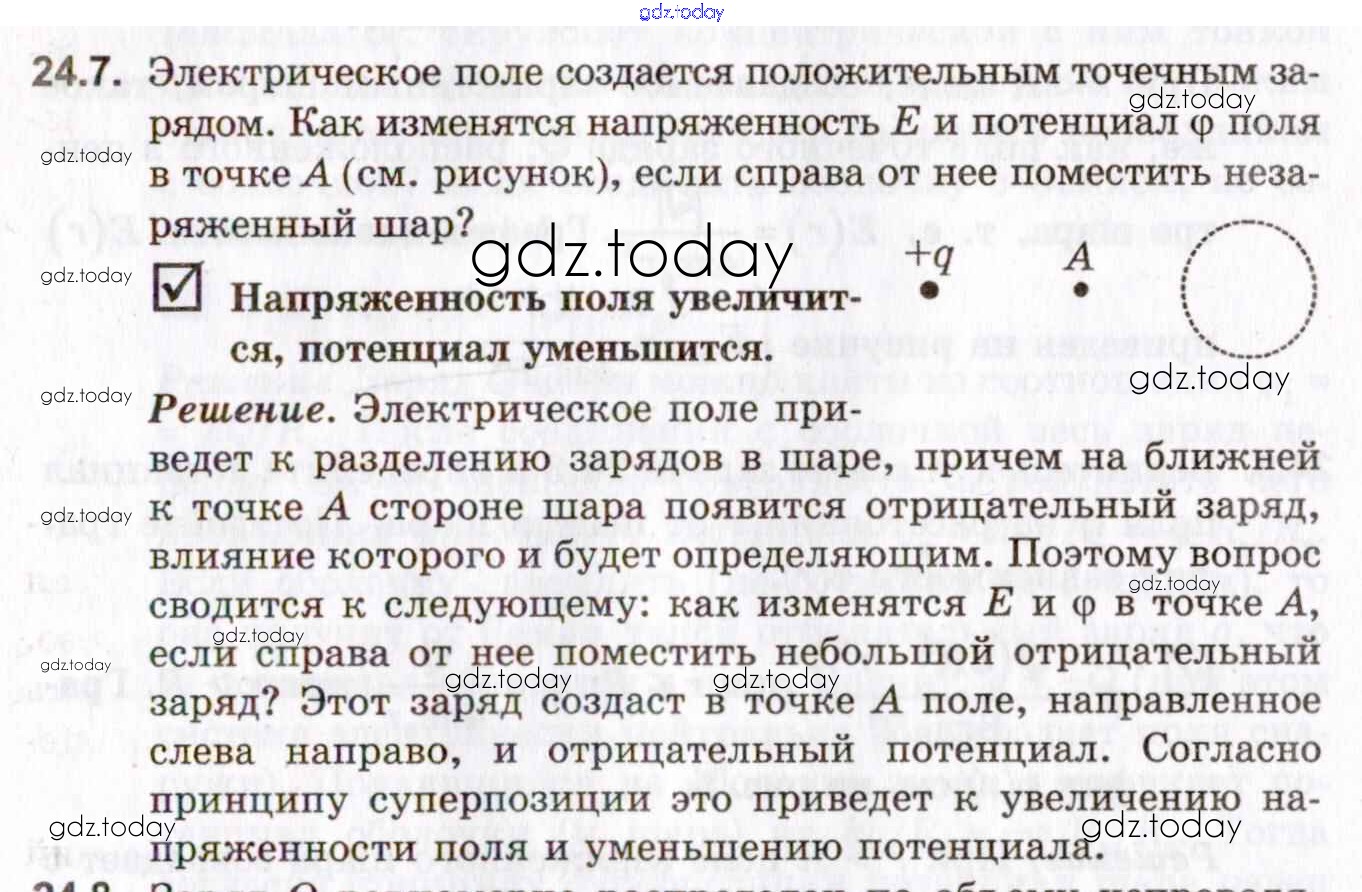 Ответы к Решение к теме 24. Потенциал электрического поля. Проводники и диэлектрики в электрическом поле 24.7 Задачнику по Физике для 10-11 класса Гельфгат, Генденштейн Профильный уровень Илекса 2021