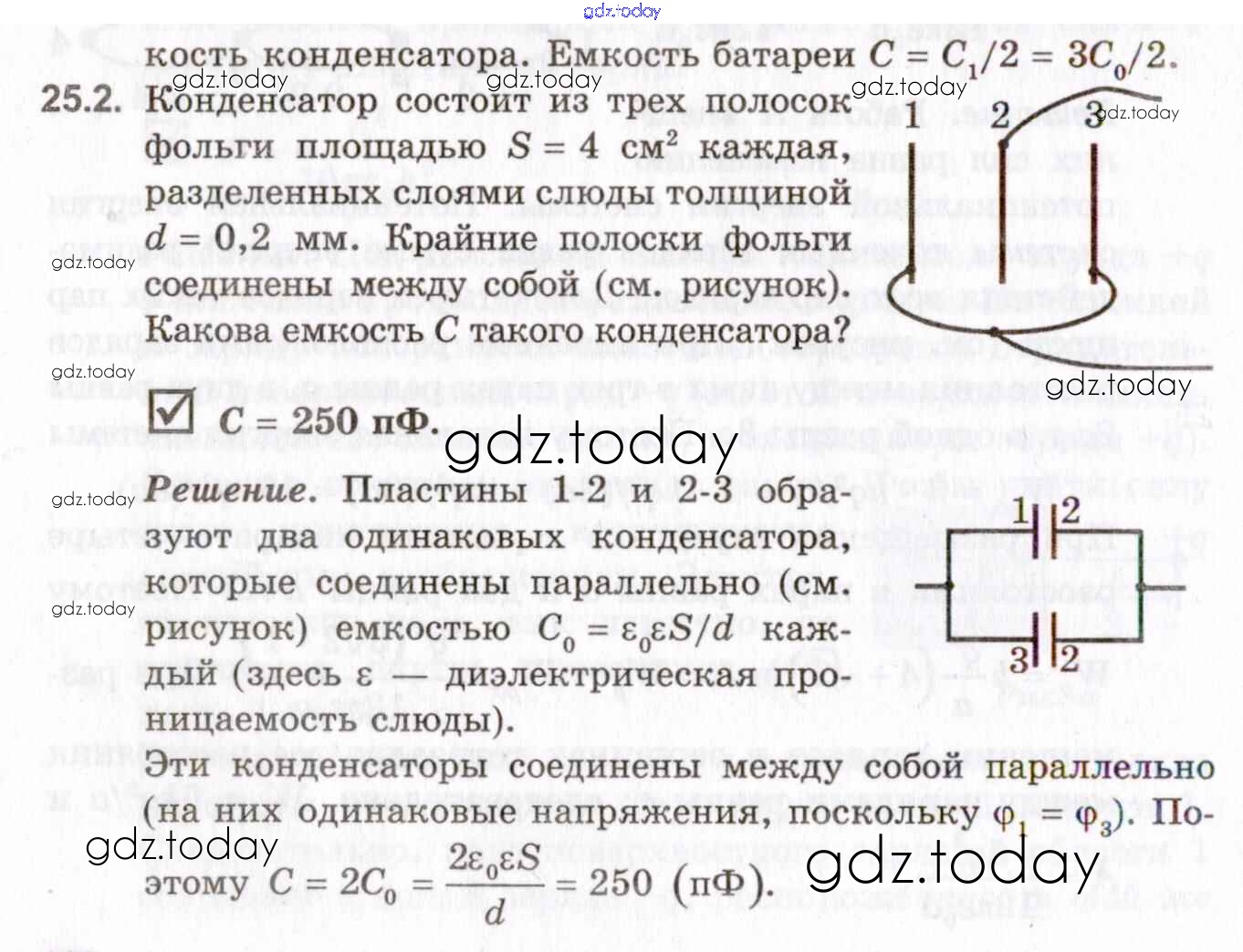 На страницах сайта gdz.today вы найдете учебный и вспомогательный материал, направленный на улучшения знаний школьной программы. ГДЗ - онлайн мир знаний Решение к теме 25. Электрическая емкость. Конденсатор. Энергия электрического поля 25.2 Задачнику по Физике для 10-11 класса Гельфгат, Генденштейн Профильный уровень Илекса 2021