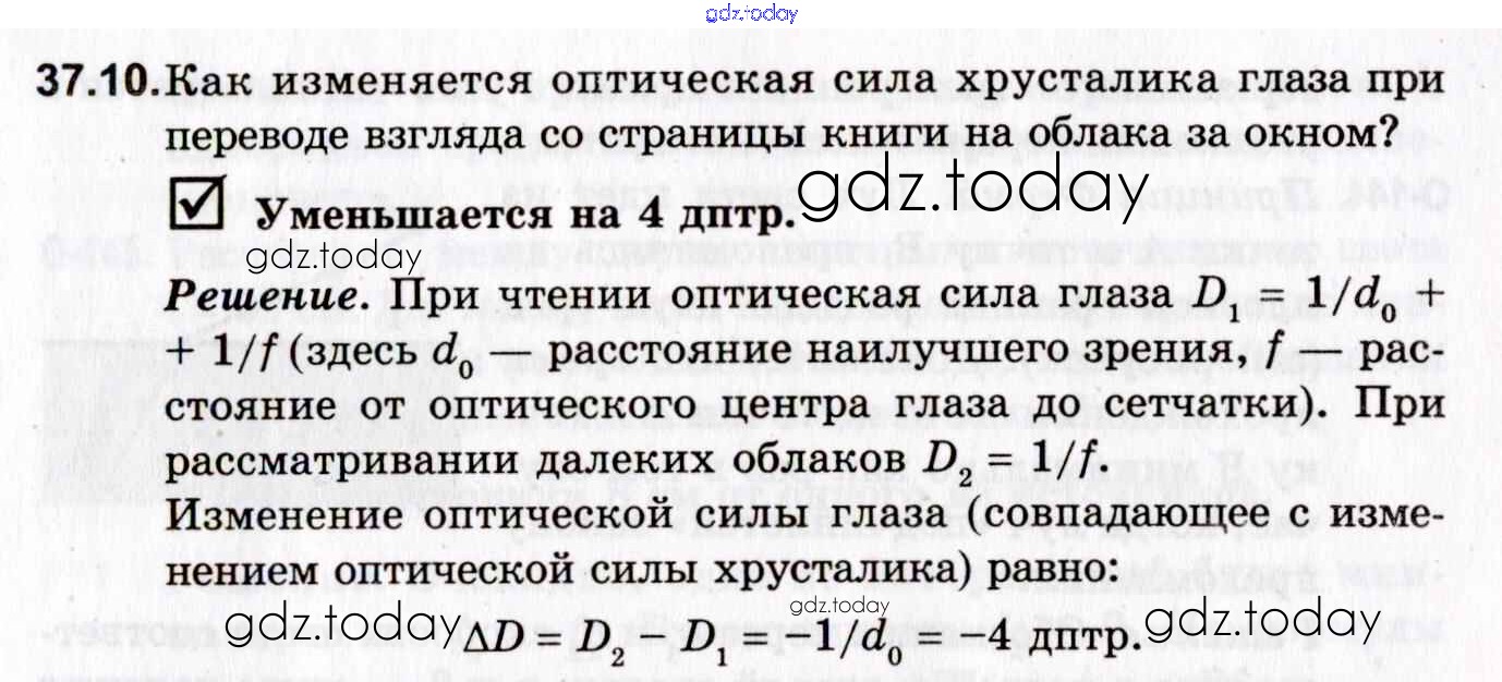 На страницах сайта gdz.today вы найдете учебный и вспомогательный материал, направленный на улучшения знаний школьной программы. ГДЗ - онлайн мир знаний Решение к теме 37. Геометрическая оптика 37.10 Задачнику по Физике для 10-11 класса Гельфгат, Генденштейн Профильный уровень Илекса 2021