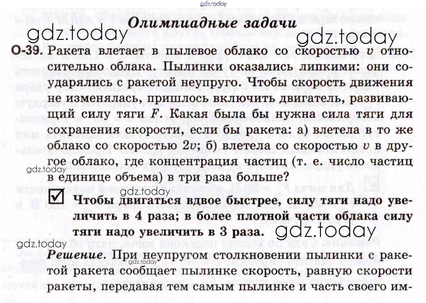 На страницах сайта gdz.today вы найдете учебный и вспомогательный материал, направленный на улучшения знаний школьной программы. ГДЗ - онлайн мир знаний Решение к теме олимпиадным задачам О-39 Задачнику по Физике для 10-11 класса Гельфгат, Генденштейн Профильный уровень Илекса 2021