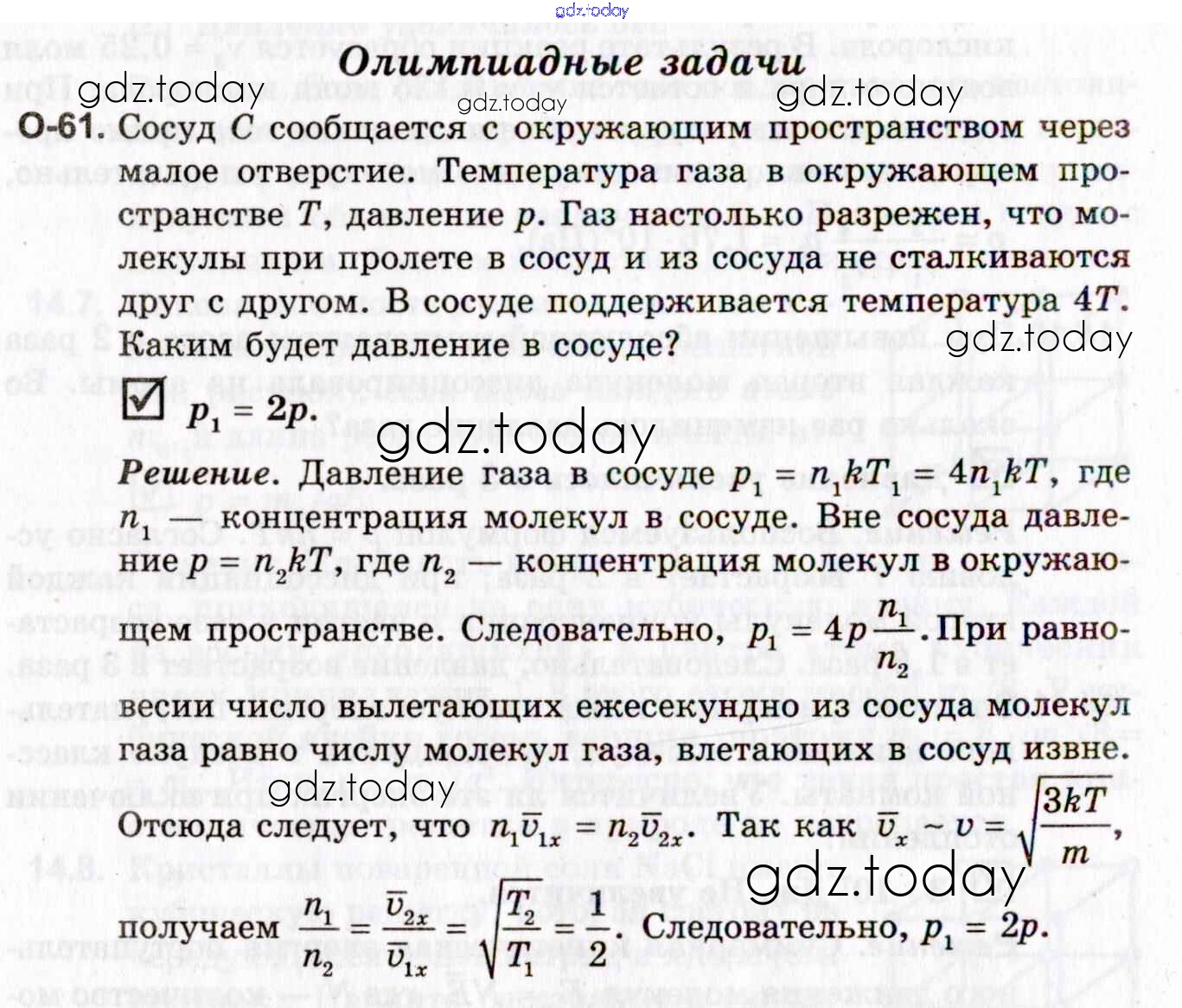 На страницах сайта gdz.today вы найдете учебный и вспомогательный материал, направленный на улучшения знаний школьной программы. ГДЗ - онлайн мир знаний Решение к теме олимпиадным задачам О-61 Задачнику по Физике для 10-11 класса Гельфгат, Генденштейн Профильный уровень Илекса 2021