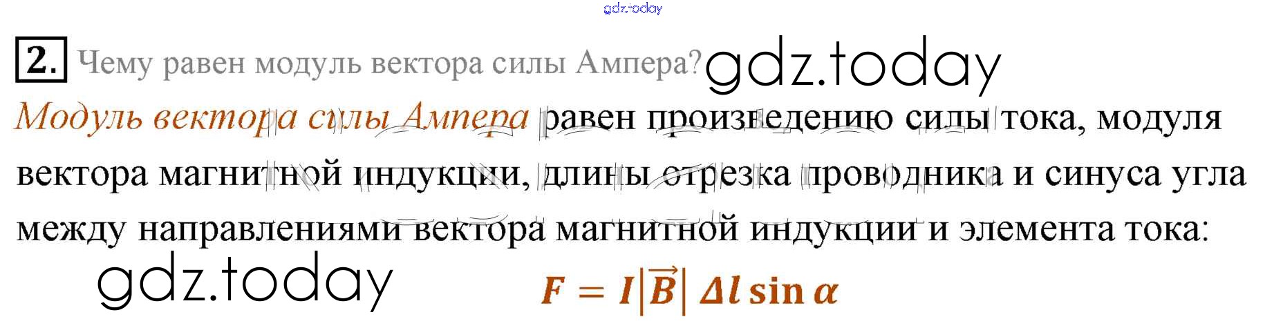 На страницах сайта gdz.today вы найдете учебный и вспомогательный материал, направленный на улучшения знаний школьной программы. ГДЗ - онлайн мир знаний Вопросы к параграфу Решение к §2. Сила ампера 2 Учебнику по Физике для 11 класса Мякишев, Буховцев Базовый уровень Просвещение 2018