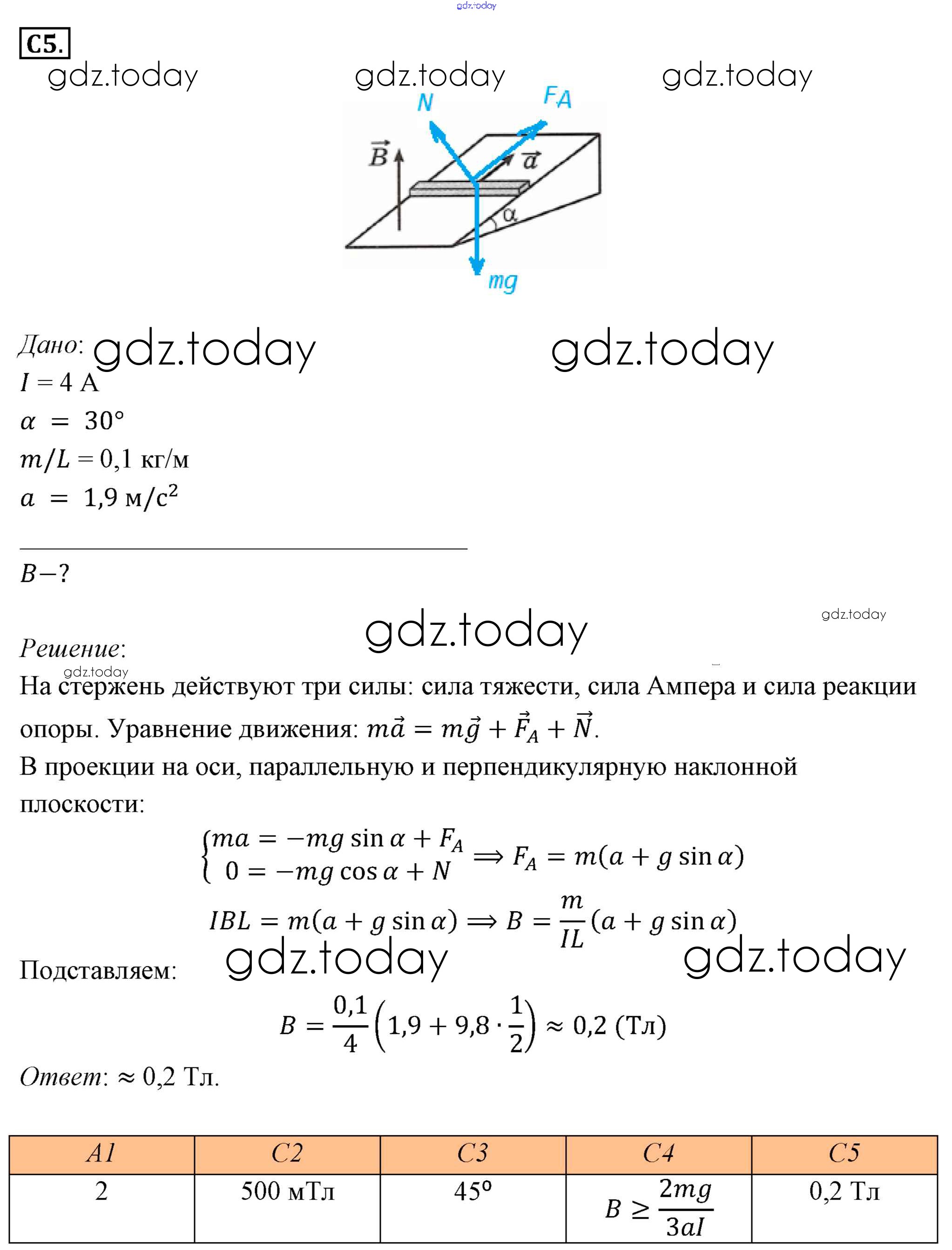 Ответы к Задания ЕГЭ Решение к §3. Примеры решения задач по теме «Сила ампера» 5 Учебнику по Физике для 11 класса Мякишев, Буховцев Базовый уровень Просвещение 2018