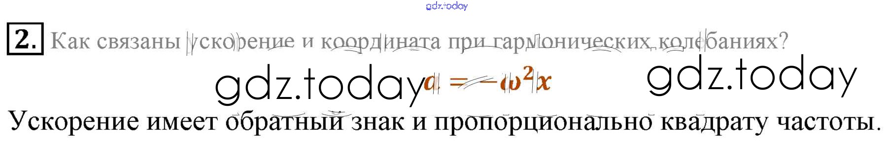 На страницах сайта gdz.today вы найдете учебный и вспомогательный материал, направленный на улучшения знаний школьной программы. ГДЗ - онлайн мир знаний Вопросы к параграфу Решение к §14. Гармонические колебания 2 Учебнику по Физике для 11 класса Мякишев, Буховцев Базовый уровень Просвещение 2018