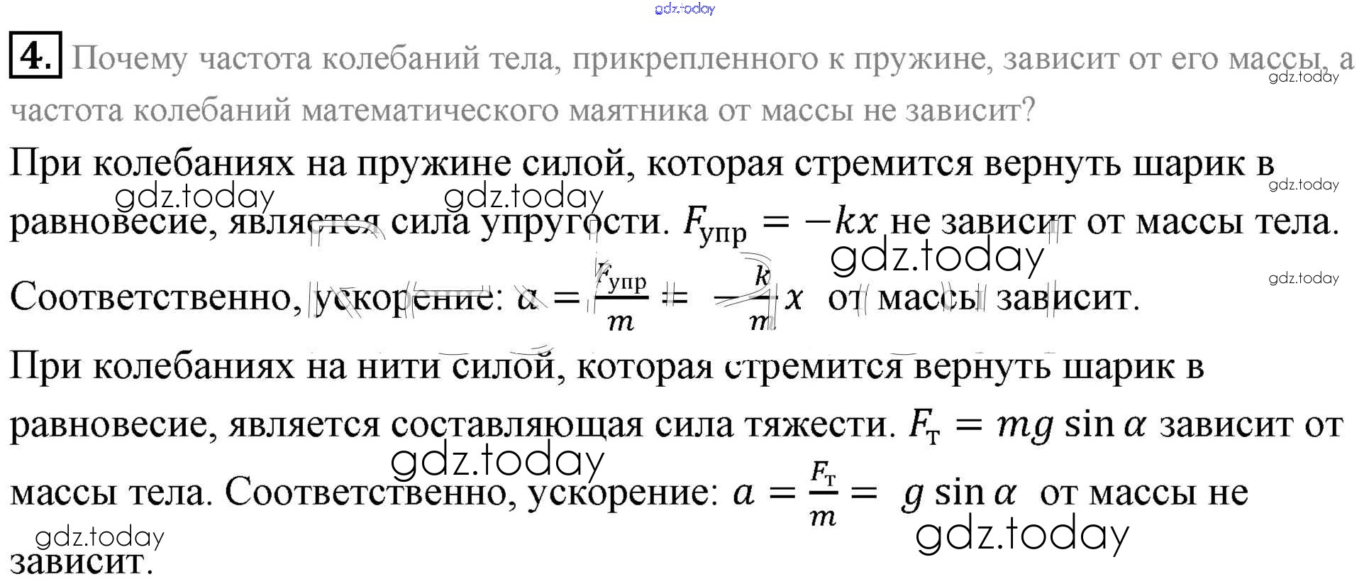 На страницах сайта gdz.today вы найдете учебный и вспомогательный материал, направленный на улучшения знаний школьной программы. ГДЗ - онлайн мир знаний Вопросы к параграфу Решение к §14. Гармонические колебания 4 Учебнику по Физике для 11 класса Мякишев, Буховцев Базовый уровень Просвещение 2018