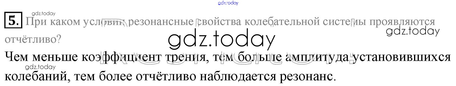 На страницах сайта gdz.today вы найдете учебный и вспомогательный материал, направленный на улучшения знаний школьной программы. ГДЗ - онлайн мир знаний Вопросы к параграфу Решение к §16. Затухающие и вынужденные колебания. Резонанс. 5 Учебнику по Физике для 11 класса Мякишев, Буховцев Базовый уровень Просвещение 2018