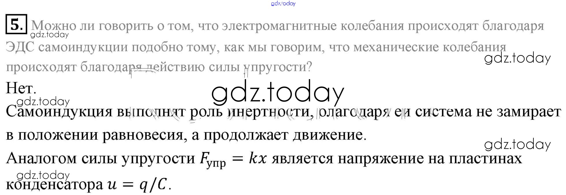 На страницах сайта gdz.today вы найдете учебный и вспомогательный материал, направленный на улучшения знаний школьной программы. ГДЗ - онлайн мир знаний Вопросы к параграфу Решение к §18. Аналогия между механическими и электромагнитными колебаниями 5 Учебнику по Физике для 11 класса Мякишев, Буховцев Базовый уровень Просвещение 2018