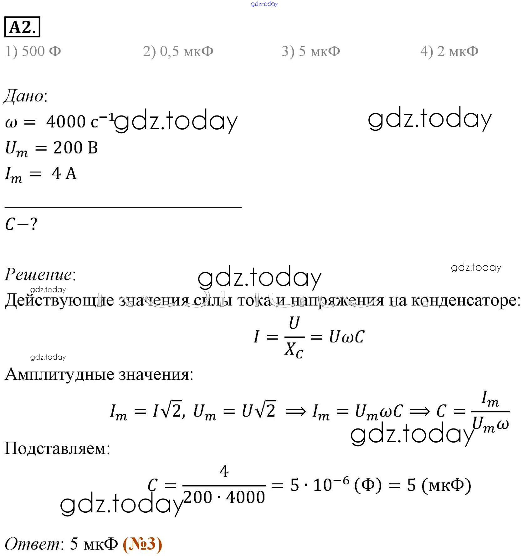Ответы к Задания ЕГЭ Решение к §22. Конденсатор и катушка индуктивности в цепи переменного тока 2 Учебнику по Физике для 11 класса Мякишев, Буховцев Базовый уровень Просвещение 2018