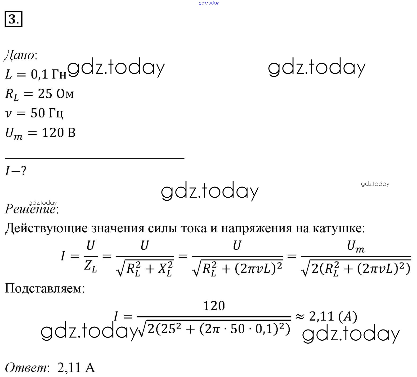 На страницах сайта gdz.today вы найдете учебный и вспомогательный материал, направленный на улучшения знаний школьной программы. ГДЗ - онлайн мир знаний Задачи для самостоятельного решения Решение к §24. Примеры решения задач по теме «Переменный электрический ток» 3 Учебнику по Физике для 11 класса Мякишев, Буховцев Базовый уровень Просвещение 2018