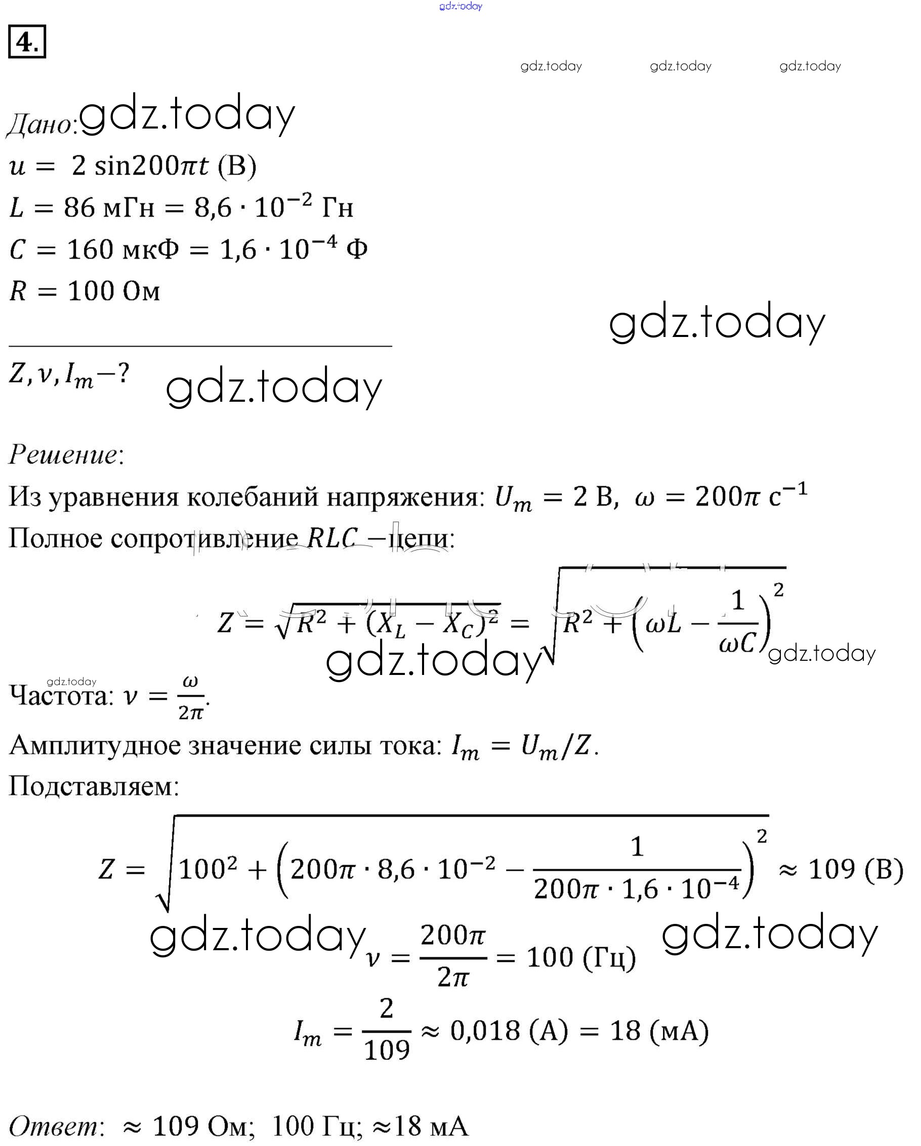 Ответы к Задачи для самостоятельного решения Решение к §24. Примеры решения задач по теме «Переменный электрический ток» 4 Учебнику по Физике для 11 класса Мякишев, Буховцев Базовый уровень Просвещение 2018