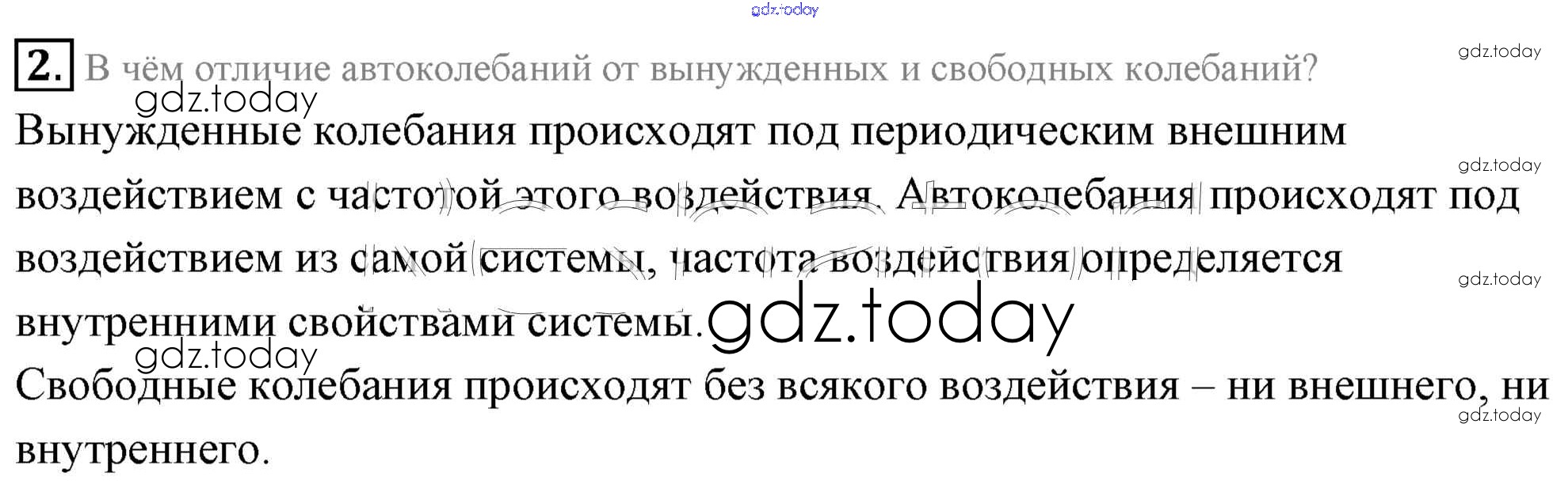 На страницах сайта gdz.today вы найдете учебный и вспомогательный материал, направленный на улучшения знаний школьной программы. ГДЗ - онлайн мир знаний Вопросы к параграфу Решение к §25. Автоколебания 2 Учебнику по Физике для 11 класса Мякишев, Буховцев Базовый уровень Просвещение 2018