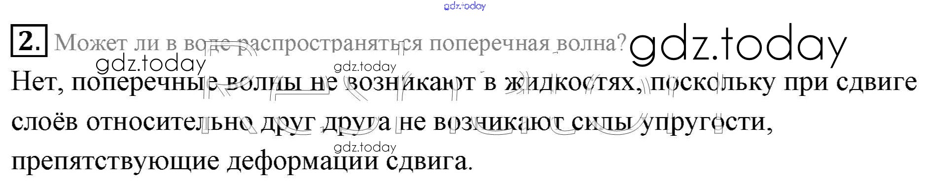 На страницах сайта gdz.today вы найдете учебный и вспомогательный материал, направленный на улучшения знаний школьной программы. ГДЗ - онлайн мир знаний Вопросы к параграфу Решение к §29. Волновые явления. Характеристики волны 2 Учебнику по Физике для 11 класса Мякишев, Буховцев Базовый уровень Просвещение 2018