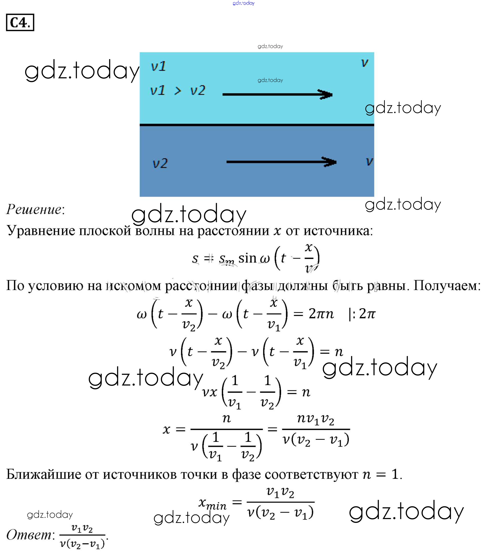 Ответы к Задания ЕГЭ Решение к §32. Примеры решения задач по теме «Механические волны» 4 Учебнику по Физике для 11 класса Мякишев, Буховцев Базовый уровень Просвещение 2018