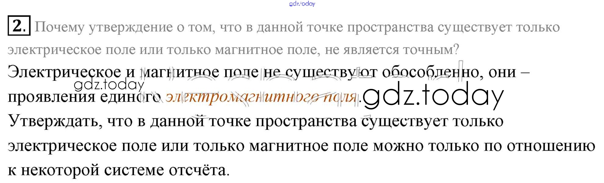 На страницах сайта gdz.today вы найдете учебный и вспомогательный материал, направленный на улучшения знаний школьной программы. ГДЗ - онлайн мир знаний Вопросы к параграфу Решение к §35. Электромагнитное поле. Электромагнитная волна 2 Учебнику по Физике для 11 класса Мякишев, Буховцев Базовый уровень Просвещение 2018