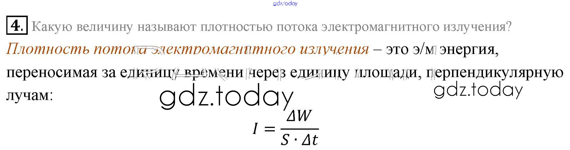 На страницах сайта gdz.today вы найдете учебный и вспомогательный материал, направленный на улучшения знаний школьной программы. ГДЗ - онлайн мир знаний Вопросы к параграфу Решение к §36. Экспериментальное обнаружение электромагнитных волн. Плотность потока электромагнитного излучения 4 Учебнику по Физике для 11 класса Мякишев, Буховцев Базовый уровень Просвещение 2018