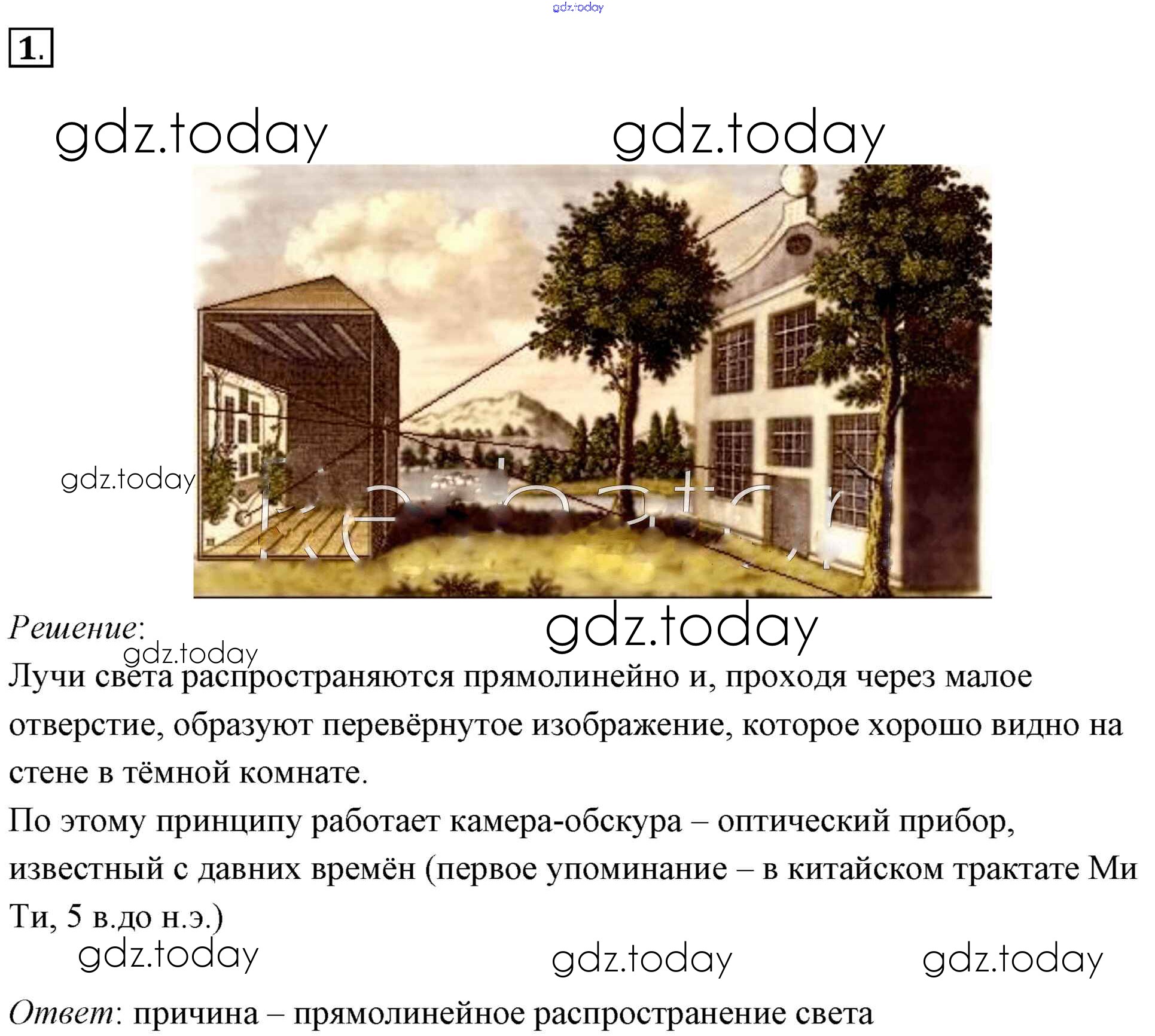 Решение к §46. Примеры решения задач по теме «Закон прямолинейного распространения света. Законы отражения света»