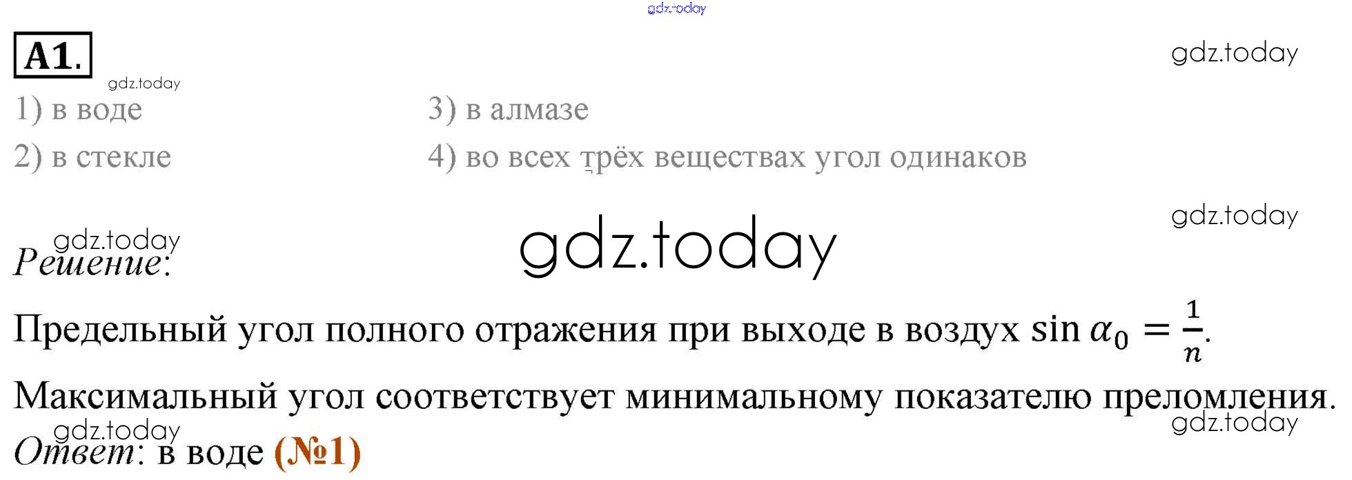 Ответы к Задания ЕГЭ Решение к §48. Полное отражение света 1 Учебнику по Физике для 11 класса Мякишев, Буховцев Базовый уровень Просвещение 2018