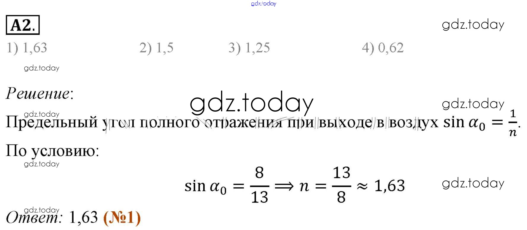 Ответы к Задания ЕГЭ Решение к §48. Полное отражение света 2 Учебнику по Физике для 11 класса Мякишев, Буховцев Базовый уровень Просвещение 2018