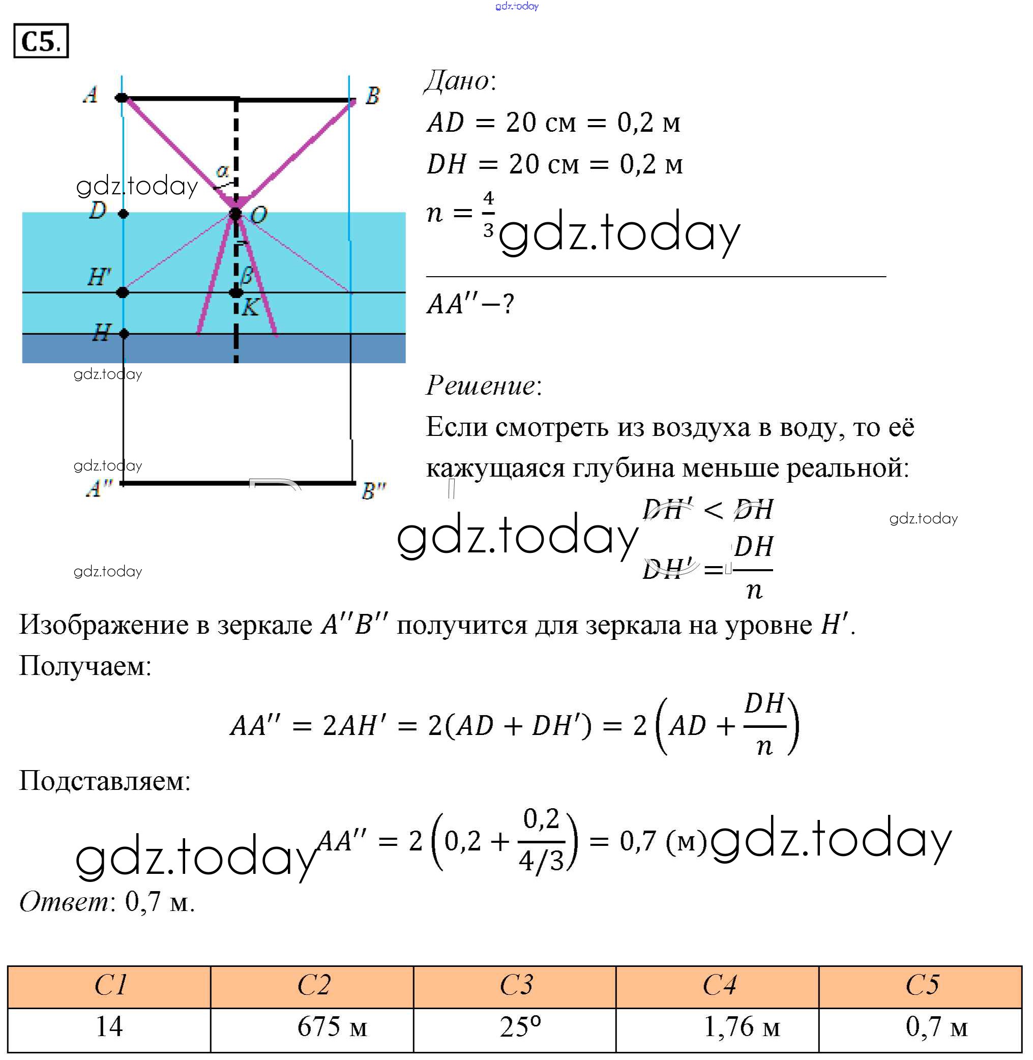 Ответы к Задания ЕГЭ Решение к §49. Примеры решения задач по теме «Закон преломления света. Полное отражение света» 5 Учебнику по Физике для 11 класса Мякишев, Буховцев Базовый уровень Просвещение 2018