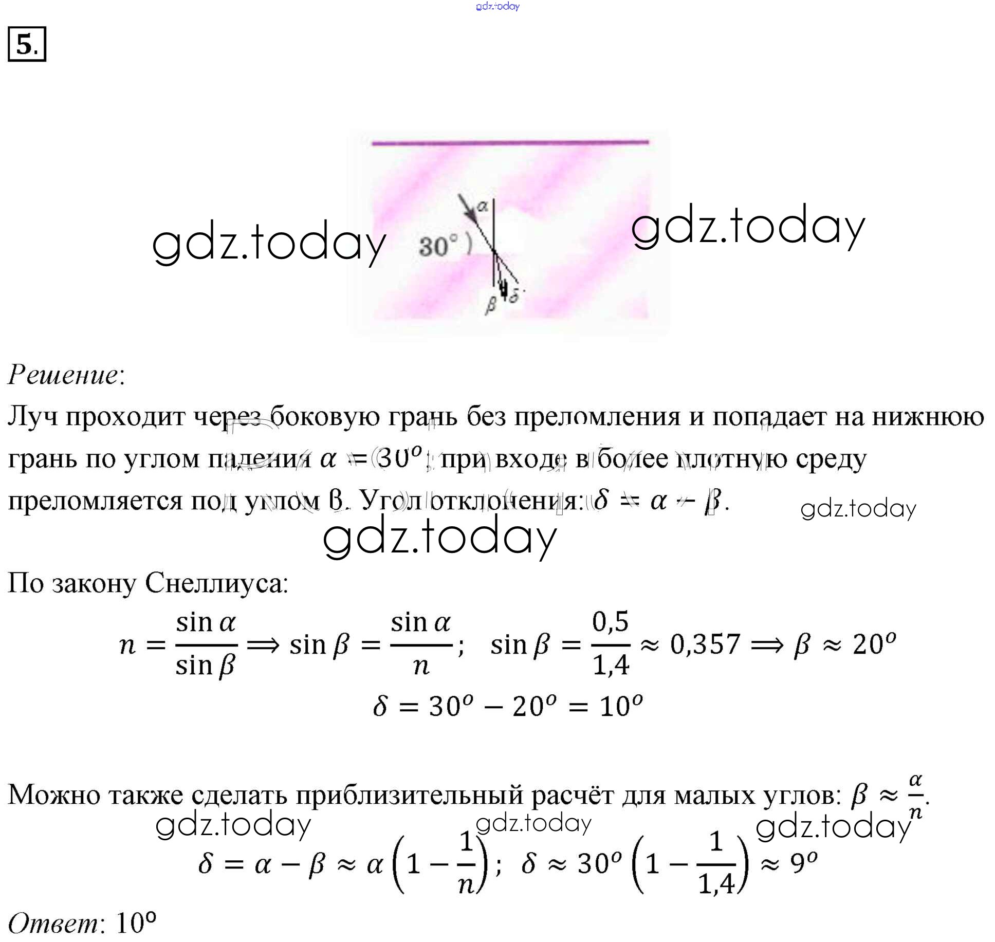 На страницах сайта gdz.today вы найдете учебный и вспомогательный материал, направленный на улучшения знаний школьной программы. ГДЗ - онлайн мир знаний Задачи для самостоятельного решения Решение к §49. Примеры решения задач по теме «Закон преломления света. Полное отражение света» 5 Учебнику по Физике для 11 класса Мякишев, Буховцев Базовый уровень Просвещение 2018